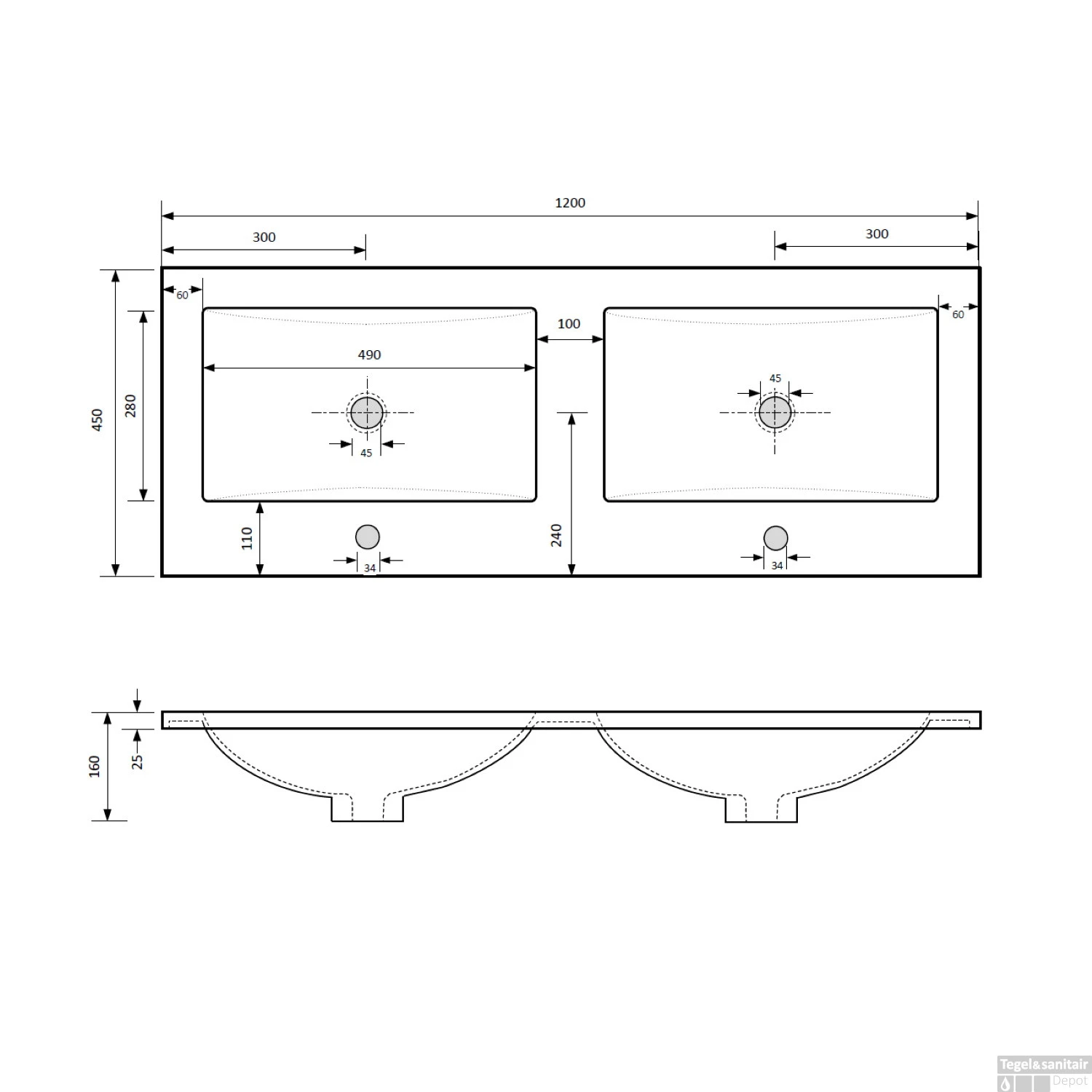 De wastafel is gemaakt van cast marble. Met een afmeting van 118.4 x 50 centimeter heeft u genoeg ruimte voor het gezin om al u toiletartikelen of handdoeken op te bergen. Cast marble wastafels zijn in alle opzichten perfect. Gegoten marmer is een tijdloos materiaal dat, in tegenstelling tot keramische materialen, een grote verscheidenheid aan vormen toelaat. Dit maakt het mogelijk om vormen te maken die ondenkbaar zouden zijn met gewone keramiek. De gegoten wastafels profiteren daarom van perfect schone randen en perfect vlakke schapruimte. De uiteindelijke oppervlakteafwerking bestaat uit een laag geverfde hars (gelcoat) die het gietmarmer beschermt tegen krassen en tegen veelgebruikte cosmetische en hygiëneproducten. De levering van de wastafel is inclusief een overloopdop).