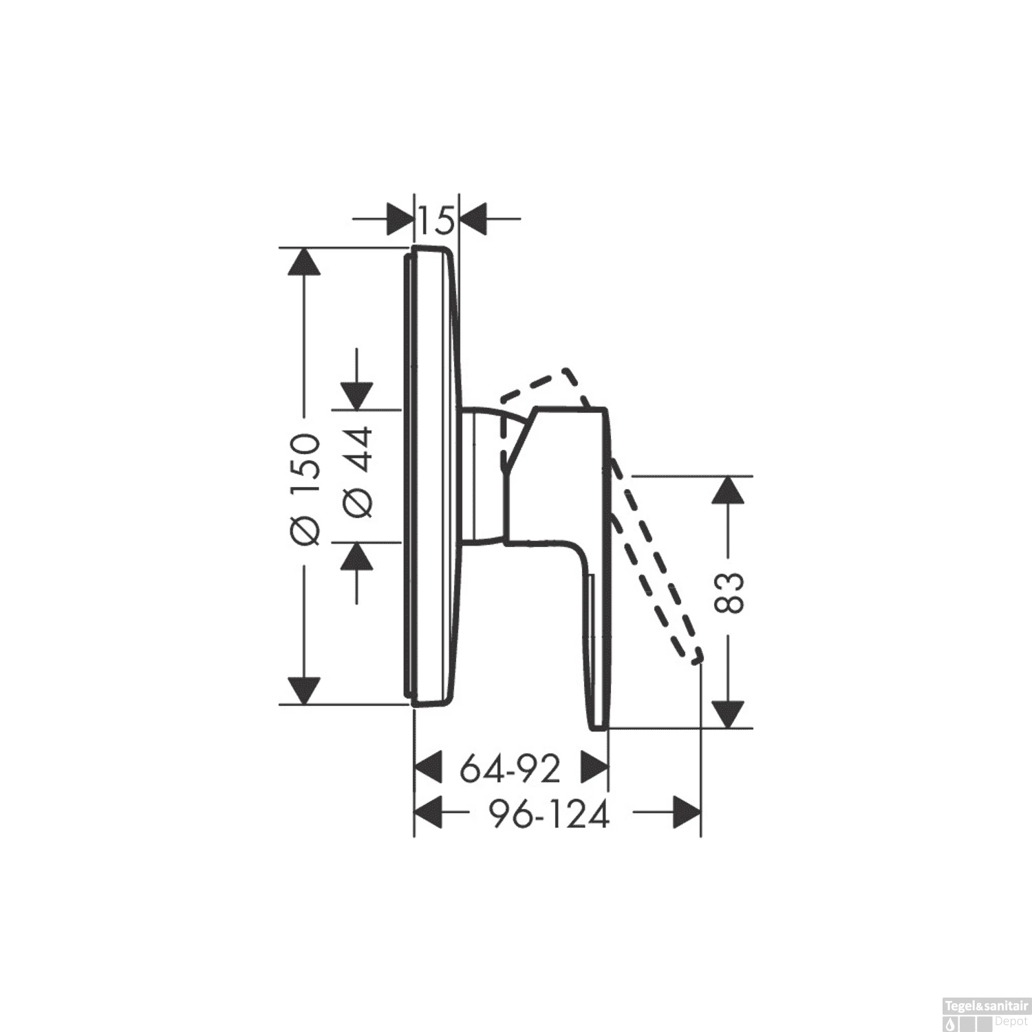 Afbouwdeel Inbouw Douchemengkraan HansGrohe Vernis Blend Eengreeps Mat Zwart