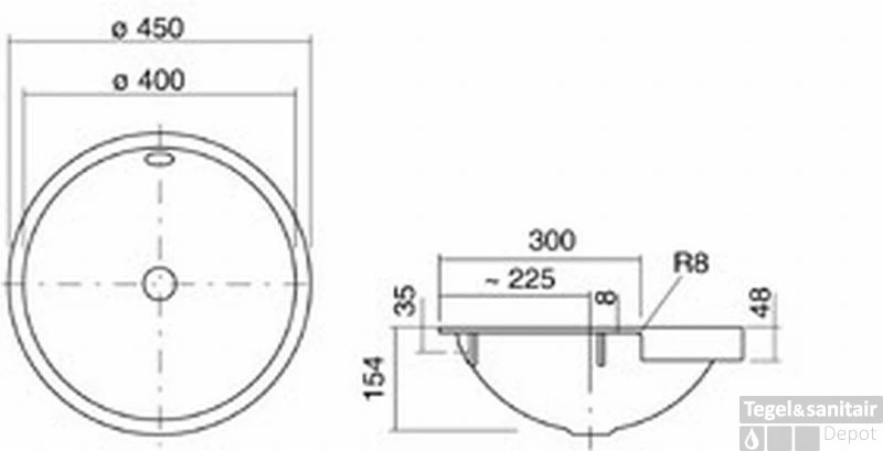 Halfinbouw wastafel 45 cm. rond