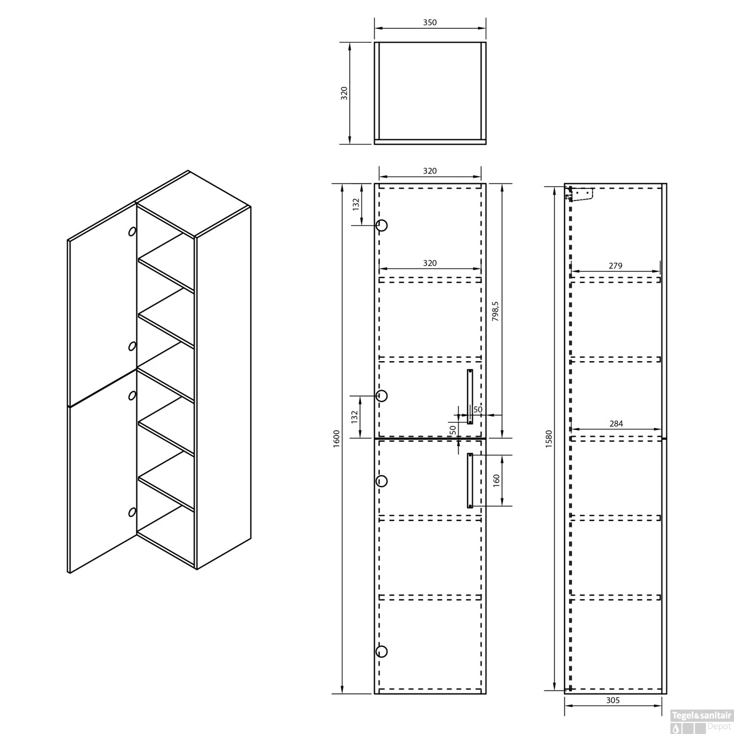 Met de badkamerkast creëert u extra opbergruimte waar u gemakkelijk al uw spullen op kunt bergen. De kolomkast is gemaakt van MDF, een veelgebruikte houtsoort. De Hilde hoge kast is heeft 2 deuren welke geopend worden middels grepen. De hoge kast is 35 centimeter breed, 32 centimeter diep en 160 centimeter hoog en is eenvoudig te monteren dankzij de voorgeboorde gaten. De badkamerkast Hilde maakt het badmeubel uit dezelfde serie helemaal compleet. De hoge kast is daarnaast ook verkrijgbaar in een betonlook.