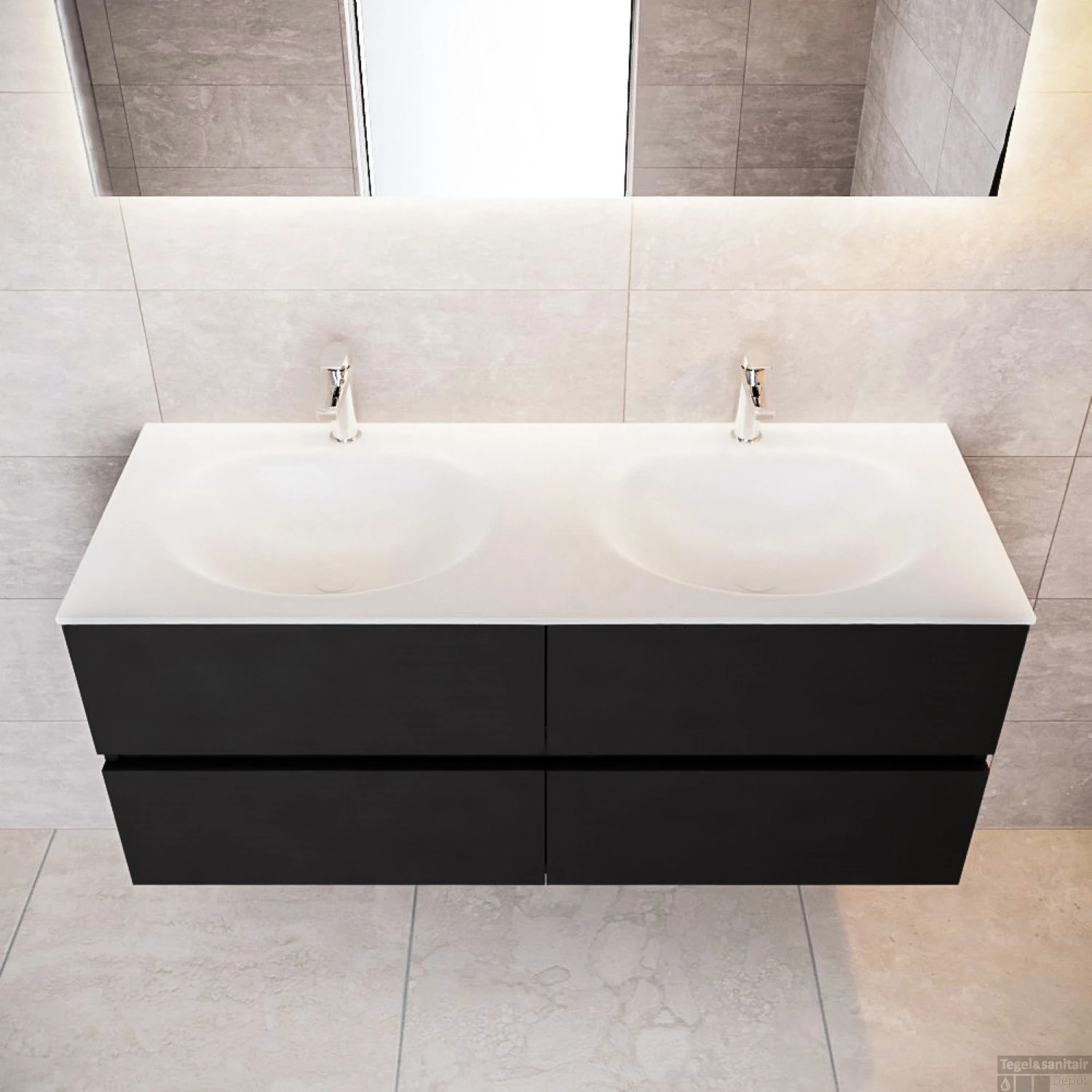 Badkamermeubel Solid Surface BWS Stockholm 120×45 cm Mat Zwart Urban Dubbel (2 kraangaten, 4 lades)
