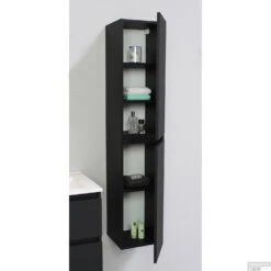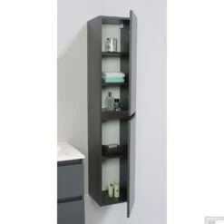 Badmeubelkast Boss & Wessing Pepper Hoge Kast Greeploos 2 Deuren 145x30x30 Cm Mat Antraciet