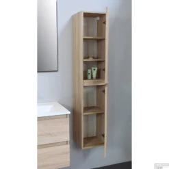 Badmeubelkast Boss & Wessing Pepper Hoge Kast Greeploos 2 Deuren 145x30x30 Cm Eiken