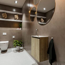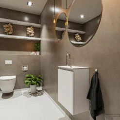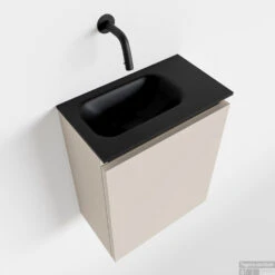 MONDIAZ TURE 40cm Toiletmeubel Light Brown Grey. EDEN Wastafel Talc Rechts 1 Kraangat
