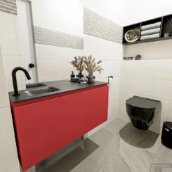 MONDIAZ OLAN 100cm Toiletmeubel Light Brown Grey. LEX Wastafel Talc Rechts 1 Kraangat