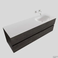 Badkamermeubel Solid Surface BWS Stockholm 150×46 Cm Rechts Wood Dark Brown (0 Kraangaten)