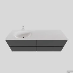 Badkamermeubel Solid Surface BWS Stockholm 150×46 Cm Rechts Mat Groen 4 Laden (met 1 Kraangat)