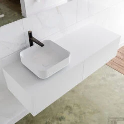Badkamermeubelset Mondiaz LAGOM 140 Cm Rechtse Waskom Solid Zonder Kraangaten Mat Wit (1 Lade)