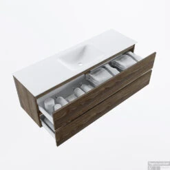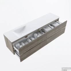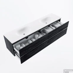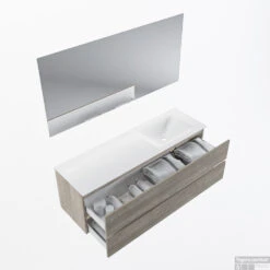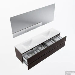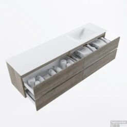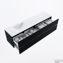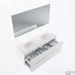 MONDIAZ VICA 150cm Badmeubel Onderkast Linen 4 Lades. Wastafel MOON Dubbel 2 Kraangaten, Kleur Talc.