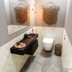 MONDIAZ ANDOR 60cm Toiletmeubel Light Brown Grey. LEX 60cm Wastafel Talc Rechts Geen Kraangat