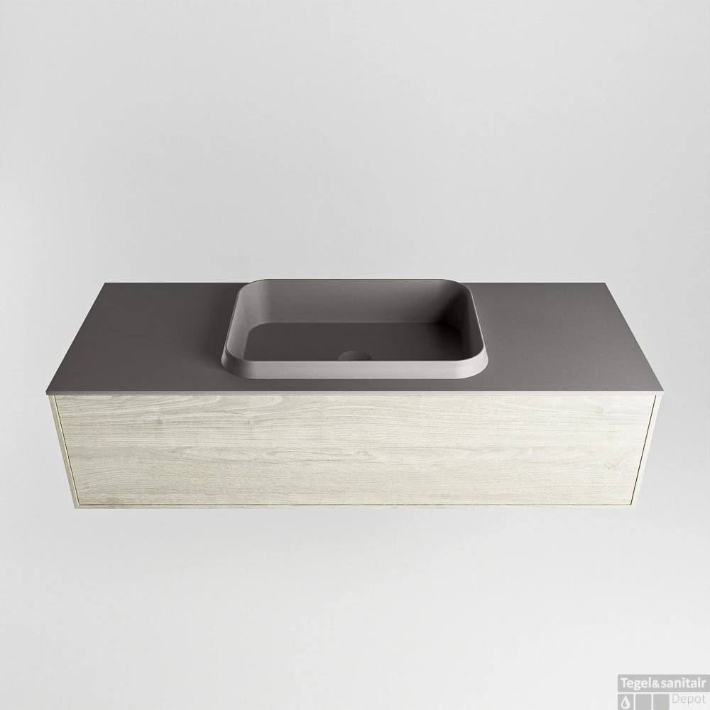 Badkamermeubelset Mondiaz Erin 120 cm met 1 Lade met RIDGE Wastafel Midden Dark grey met 1 kraangat Greeploos Mat Light brown grey