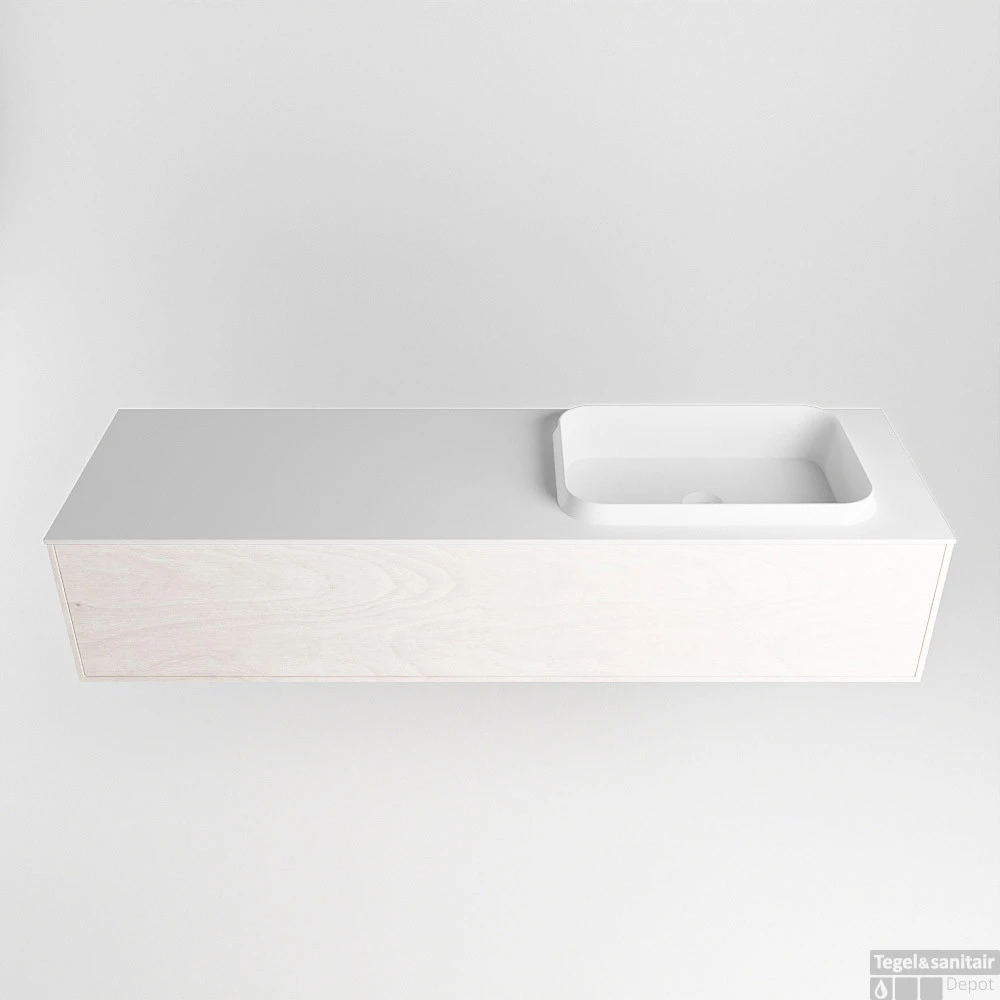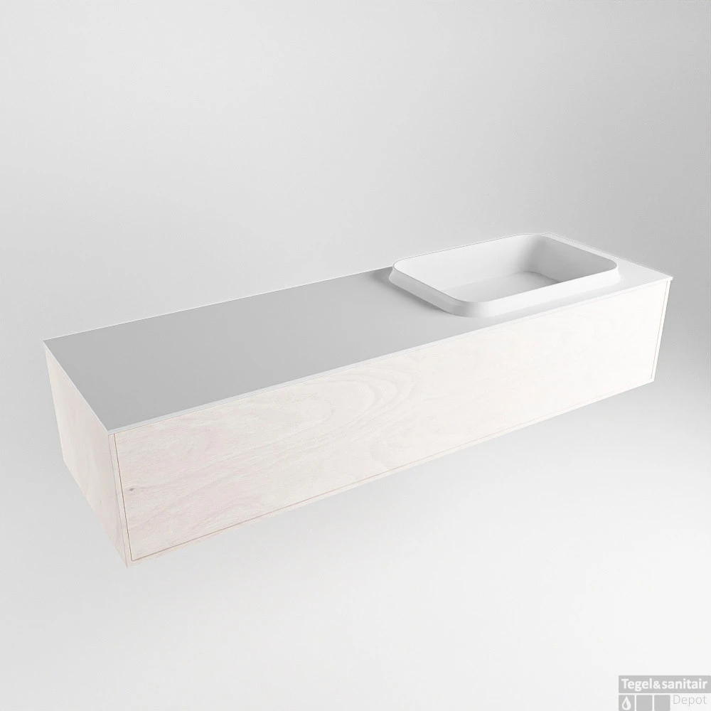 Badkamermeubelset Mondiaz Erin 150 cm met 1 Lade met RIDGE Wastafel Rechts Talc Zonder Kraangaten Greeploos Mat Underlayment