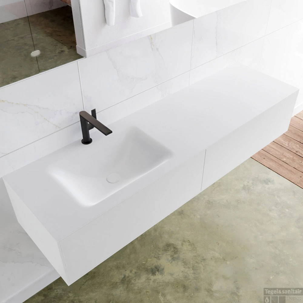 Badkamermeubelset Mondiaz LAGOM 160 cm Linkse Waskom Solid Surface Met 1 Kraangat Mat Wit (2 laden)