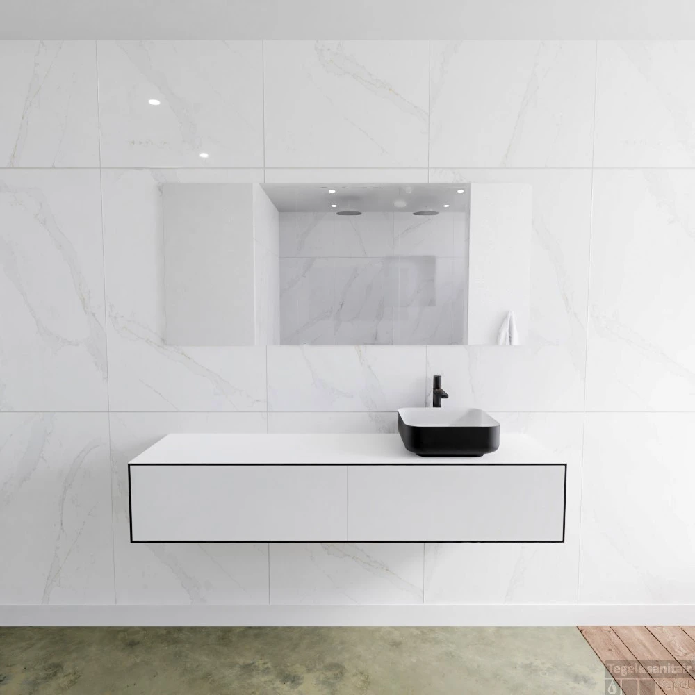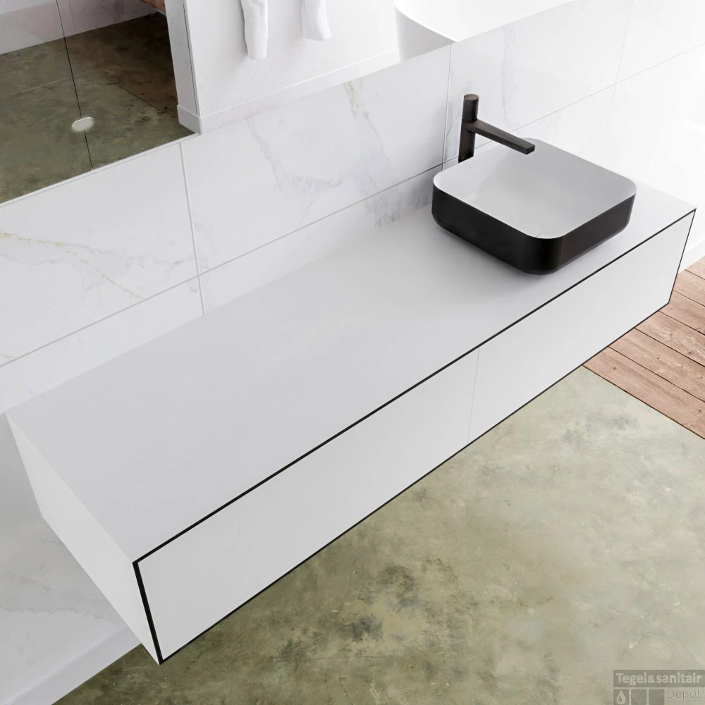 Het hangende badkamermeubel is gemaakt van solid surface. Dit meubel is 160 cm lang en heeft 2 lades die greeploos zijn. De lades kunnen worden geopend met een push-2-open systeem. De panelen zijn naadloos met elkaar verlijmd. Dit zorg voor een strakke en stijlvolle afwerking van uw badkamer.