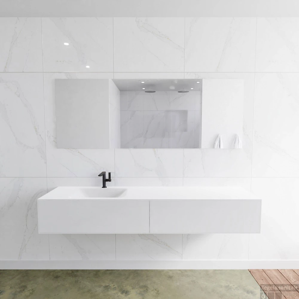Badkamermeubelset Mondiaz LAGOM 190 cm Linkse Waskom Solid Surface Met 1 Kraangat Mat Wit (2 laden)