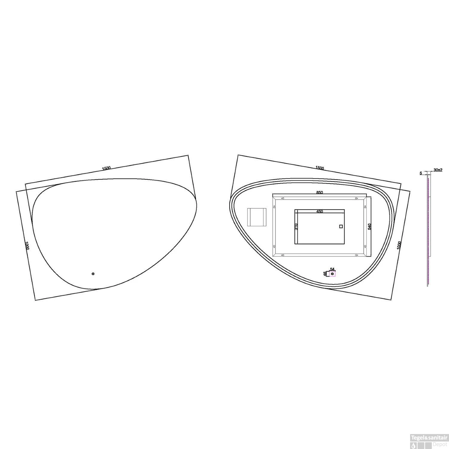 Specificaties Badkamerspiegel Boss & Wessing Luma Dimbare LED Verlichting Condensvrij 150×100 cm: