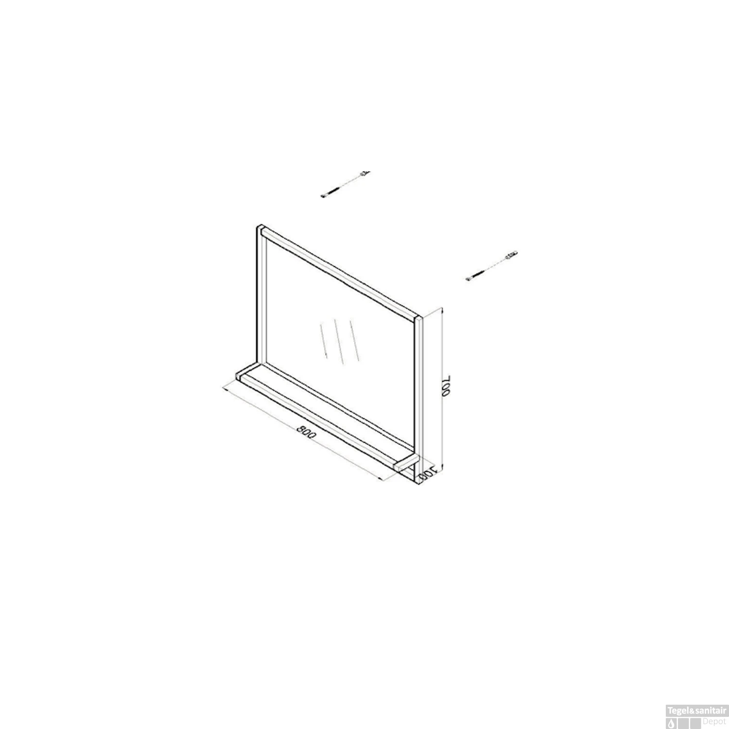 De spiegel heeft een hoogte van 70 cm en is 80 cm breed. Het planchet heeft een diepte van 10 cm. U kunt de spiegel eenvoudig bevestigen aan de muur.