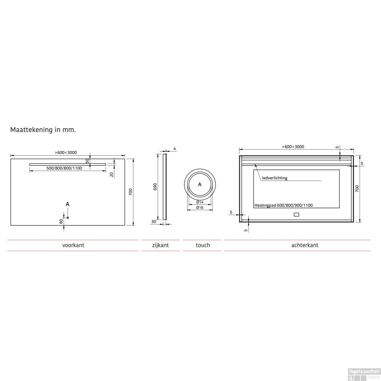 Specificaties Badkamerspiegel Xenz Lazise 70×70 cm met LED Verlichting