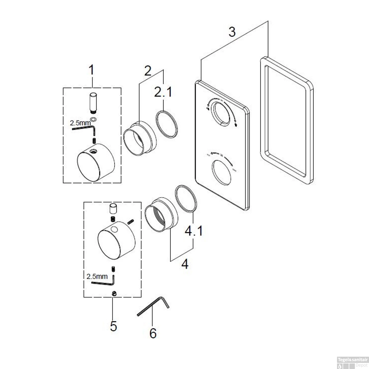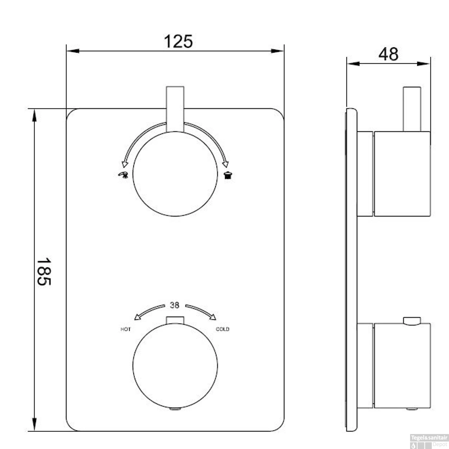 BWS Afbouwdeel Cemal Douche Thermostaat 2Weg Mat Zwart