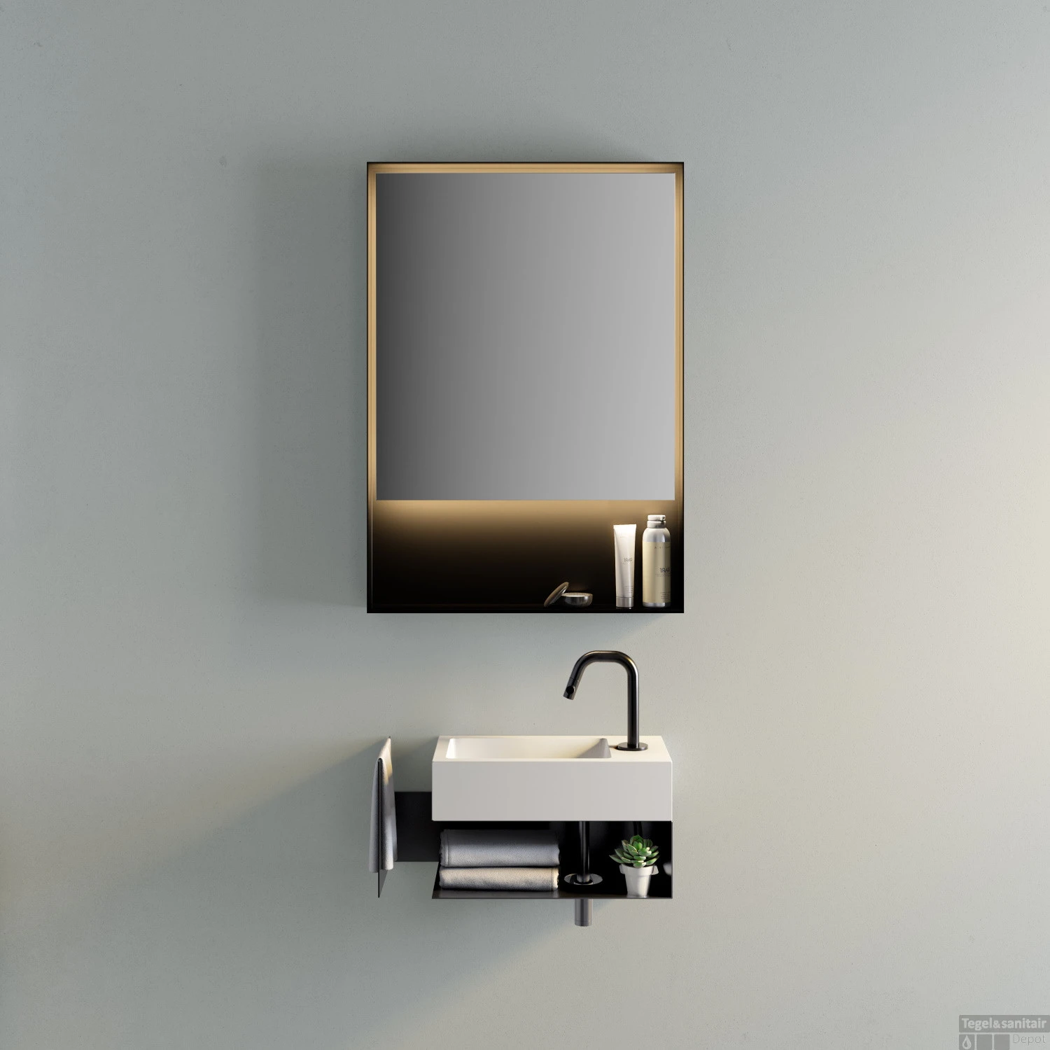 Clou Fonteinkast Open Met Handdoekhouder tbv Flush Fontein Zwart (Kraangat Links)