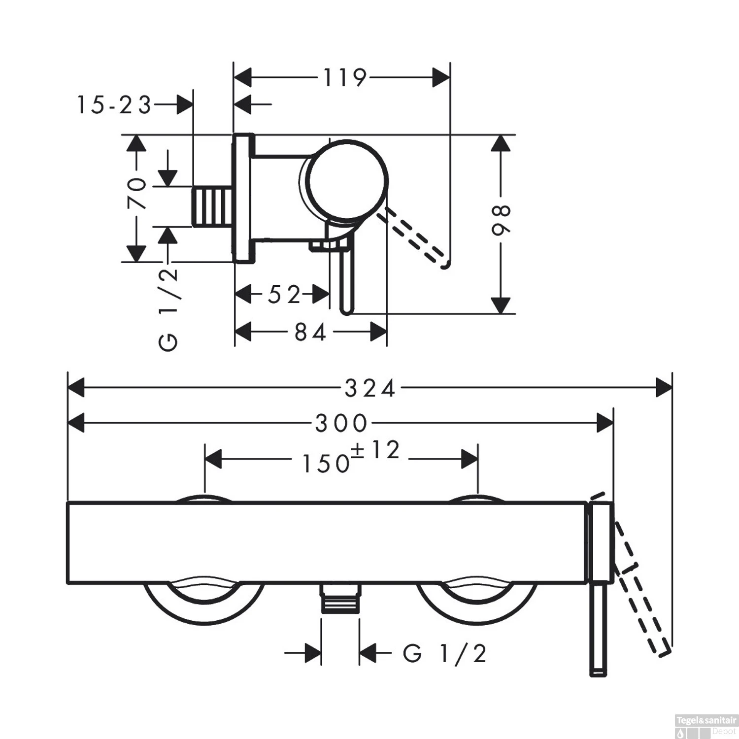 Specificaties Douchekraan Opbouw Finoris HansGrohe Eengreeps Mat Wit: