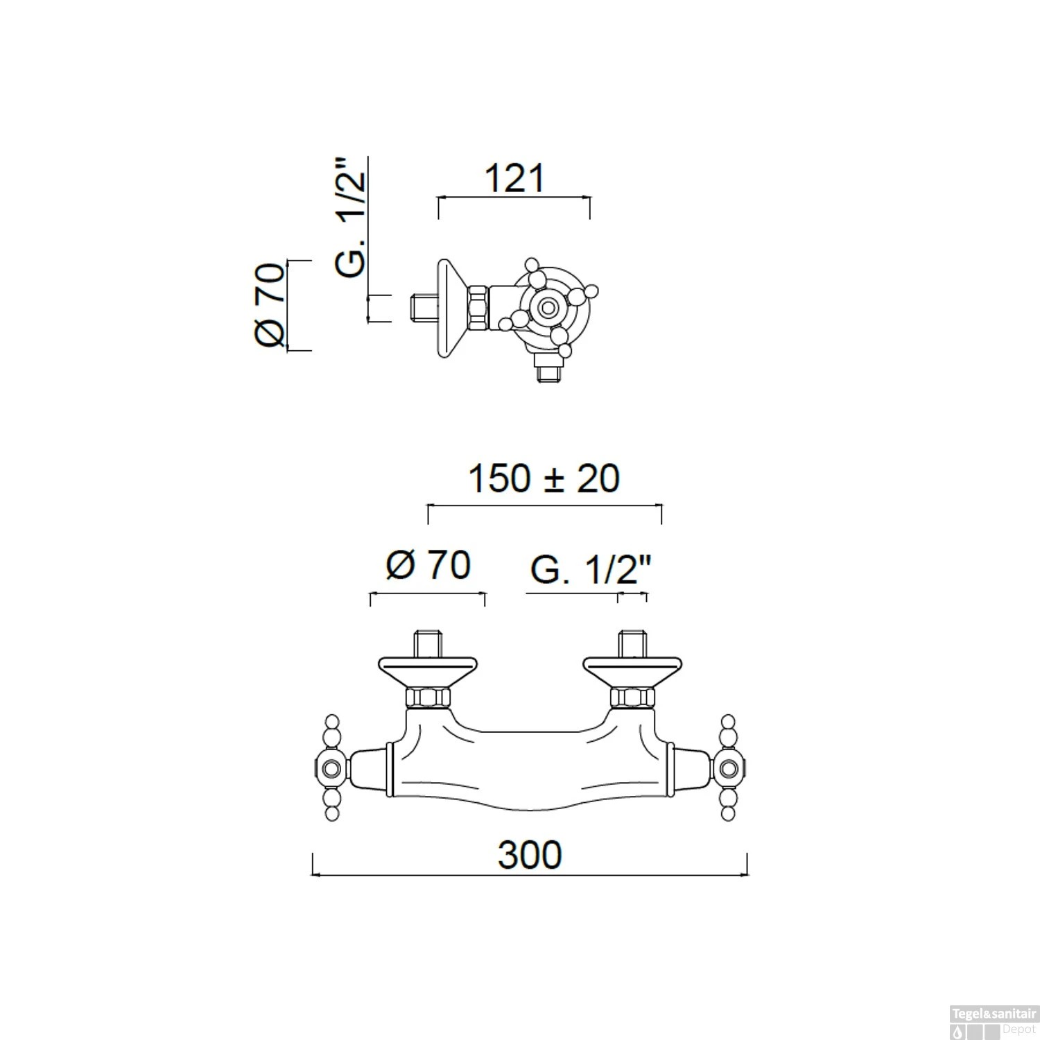 Specificaties Douchekraan Opbouw Sanimex Thermostatisch Kruisgreep HoH 15cm Chroom: