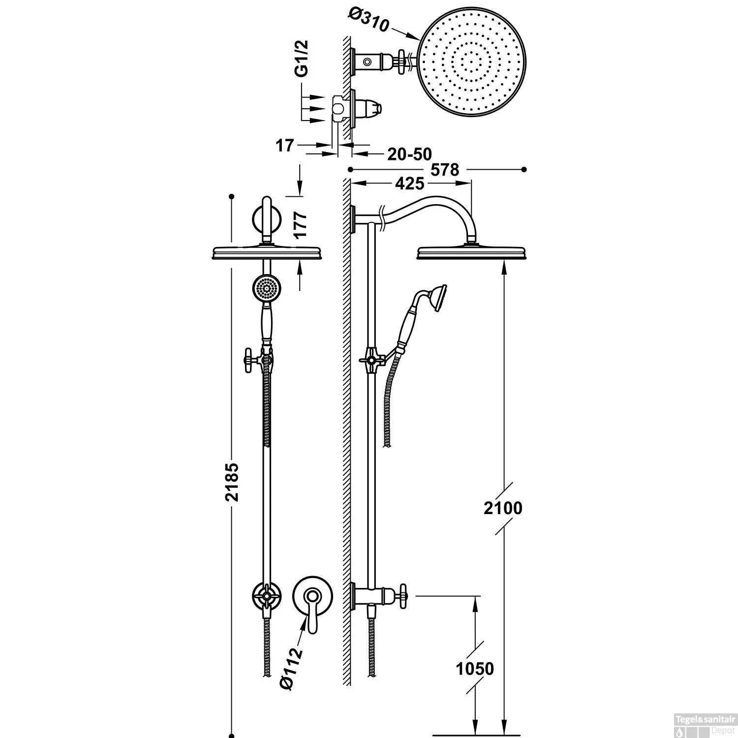 Specificaties Douchekraanset Tres Clasic Inbouw Mengkraan Verouderd Messing Mat: