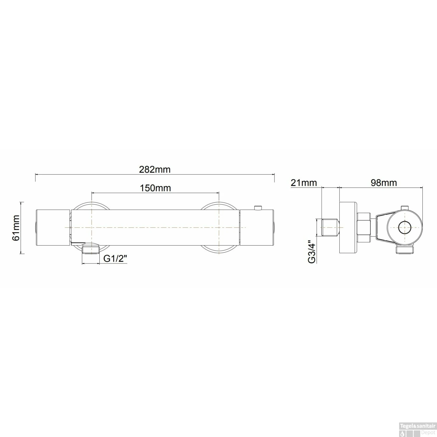 Deze thermostaatkraan is van het merk Boss & Wessing en staat garant voor kwaliteit en design. De keramische schijven zorgen er verder voor dat de douchethermostaat een lange levensduur heeft. De douchethermostaat heeft een hart-op- hart van 15 centimeter. De mat zwarte coating op de douchethermostaat zorgt er voor een industriële look. We adviseren u wel om op te passen met gereedschap bij de montage van de mat zwarte kraan. Dit kan wat krasgevoelig zijn met metalen voorwerpen.