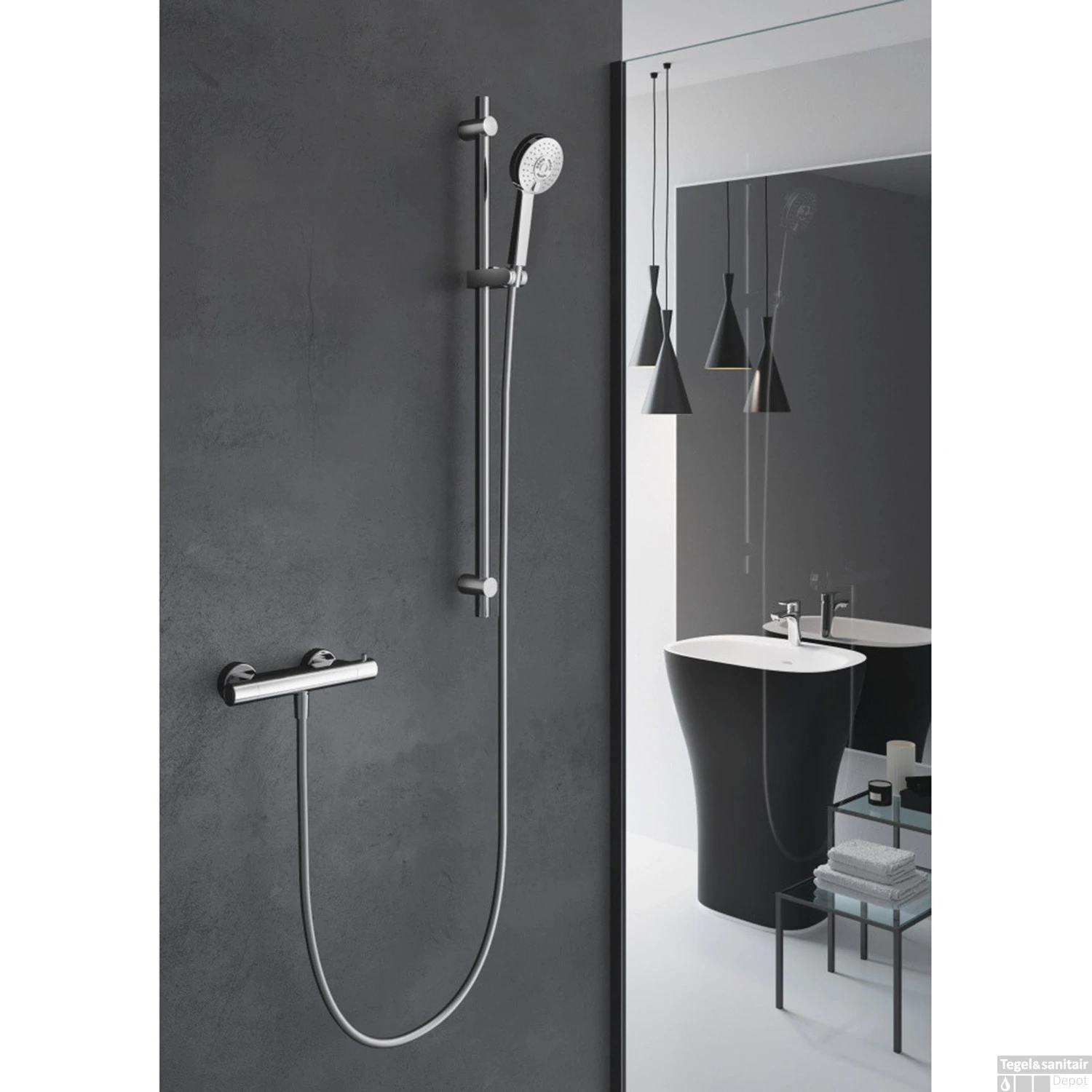 De praktische douchekraan voorzien van thermostaatfunctie. Het fijne van een thermostaatkraan, is dat het door u ingestelde temperatuur van het water exact gelijk blijft. Via thermostatische kleppen wordt het koude en hete water zo gemengd, dat het water een constante temperatuur heeft. Wanneer de watertoevoer wijzigt, reageert de thermostaat direct.