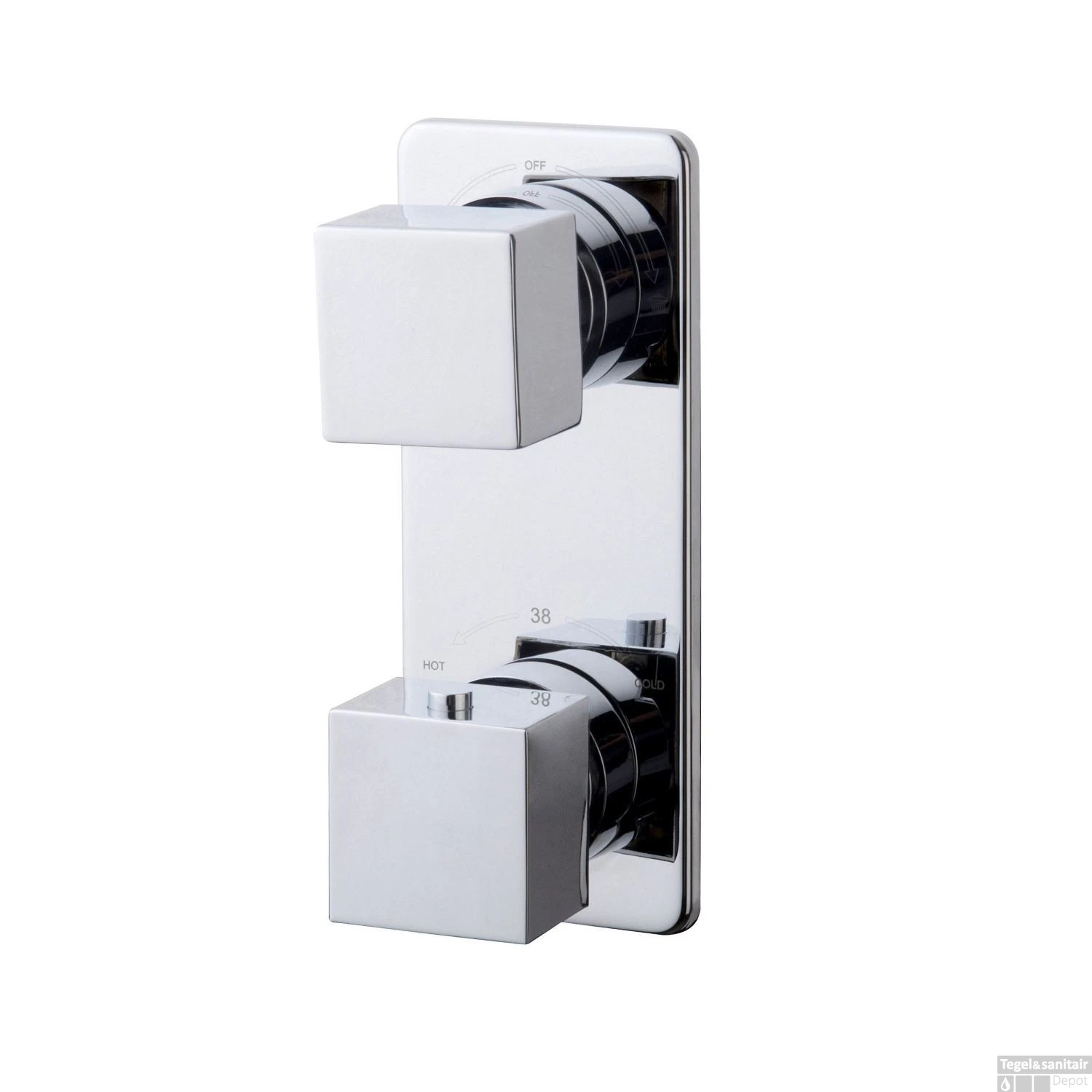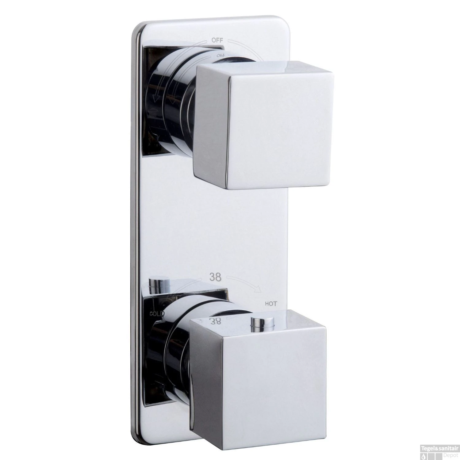 De vierkante Rombo douchekraan is voorzien van een 2-weg omstel. Dat betekend dat u het water in twee verschillende richtingen kunt bedienen. De ene bediening is voor de hoofddouche en de andere voor de handdouche. Omdat het een thermostaatkraan is, wordt het water tot 38 graden begrenst. Hiermee voorkomt u verbranding en zekerheid dat uw kinderen ook veilig kunnen douchen.