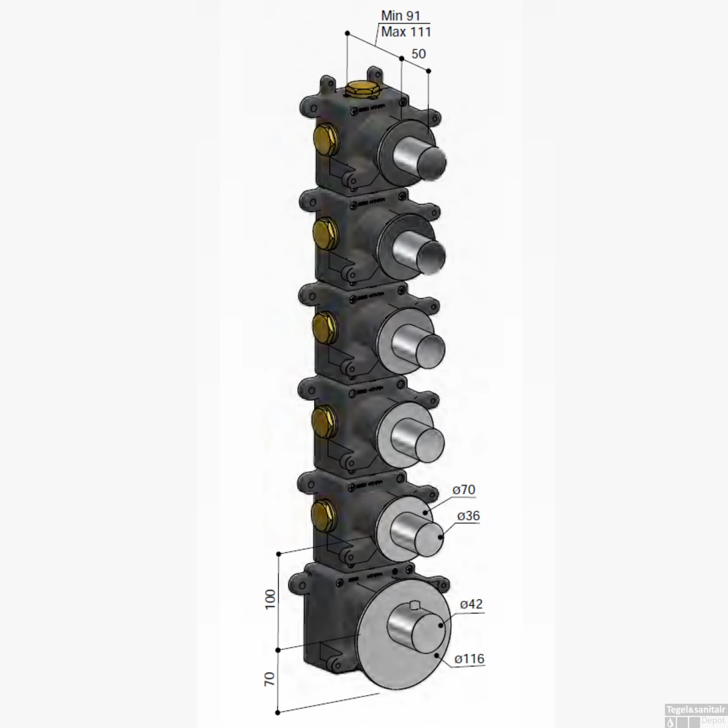 Specificaties Hotbath Mate Afbouwdeel High Flow 5 Stopkranen Rond Chroom