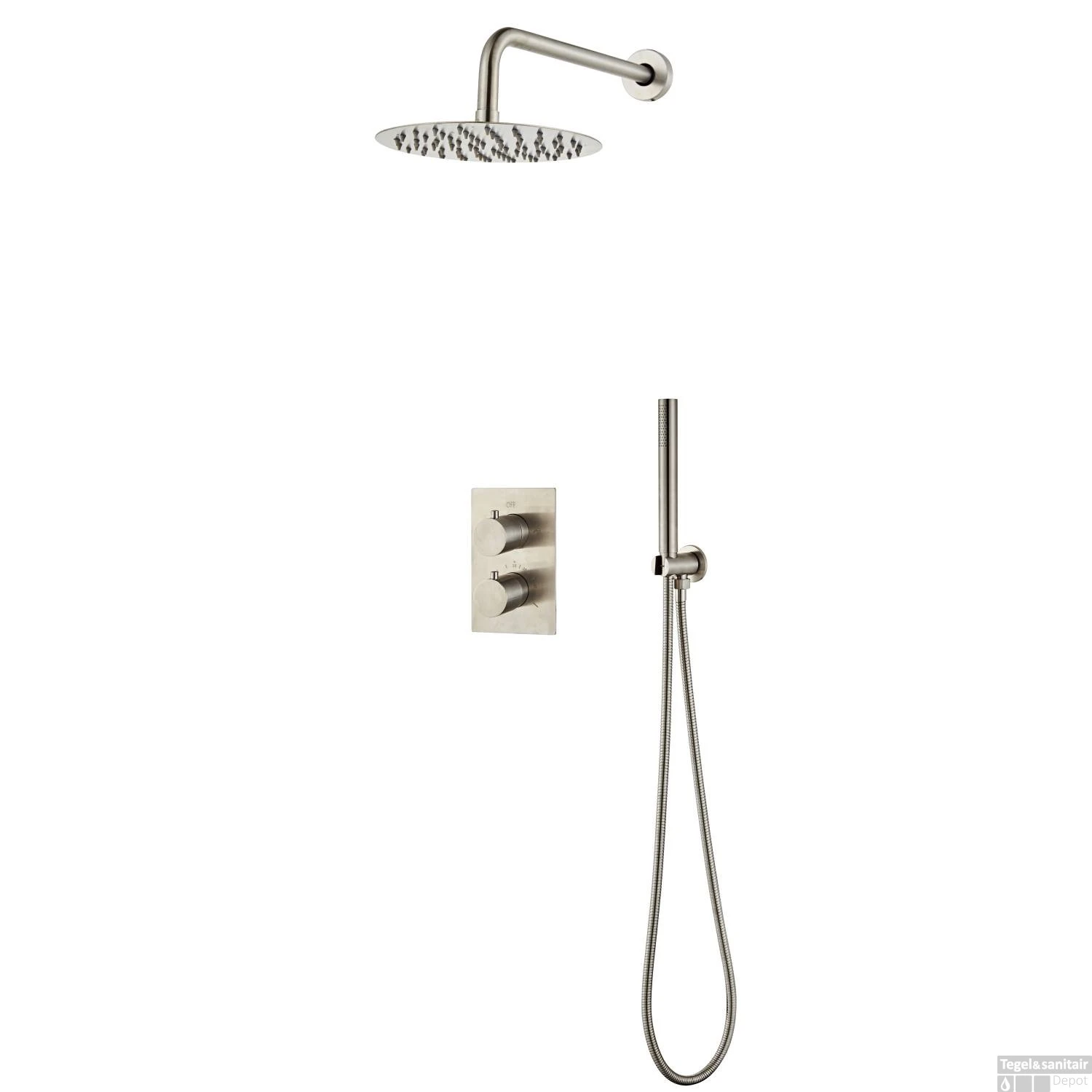 De thermostaatkraan is helemaal compleet met in- en afbouwdeel. U plaatst het inbouwdeel in de wand en werkt deze af met de afdekplaat en bedieningsknoppen. Let erop dat de inbouwdiepte minimaal 70mm moet zijn!