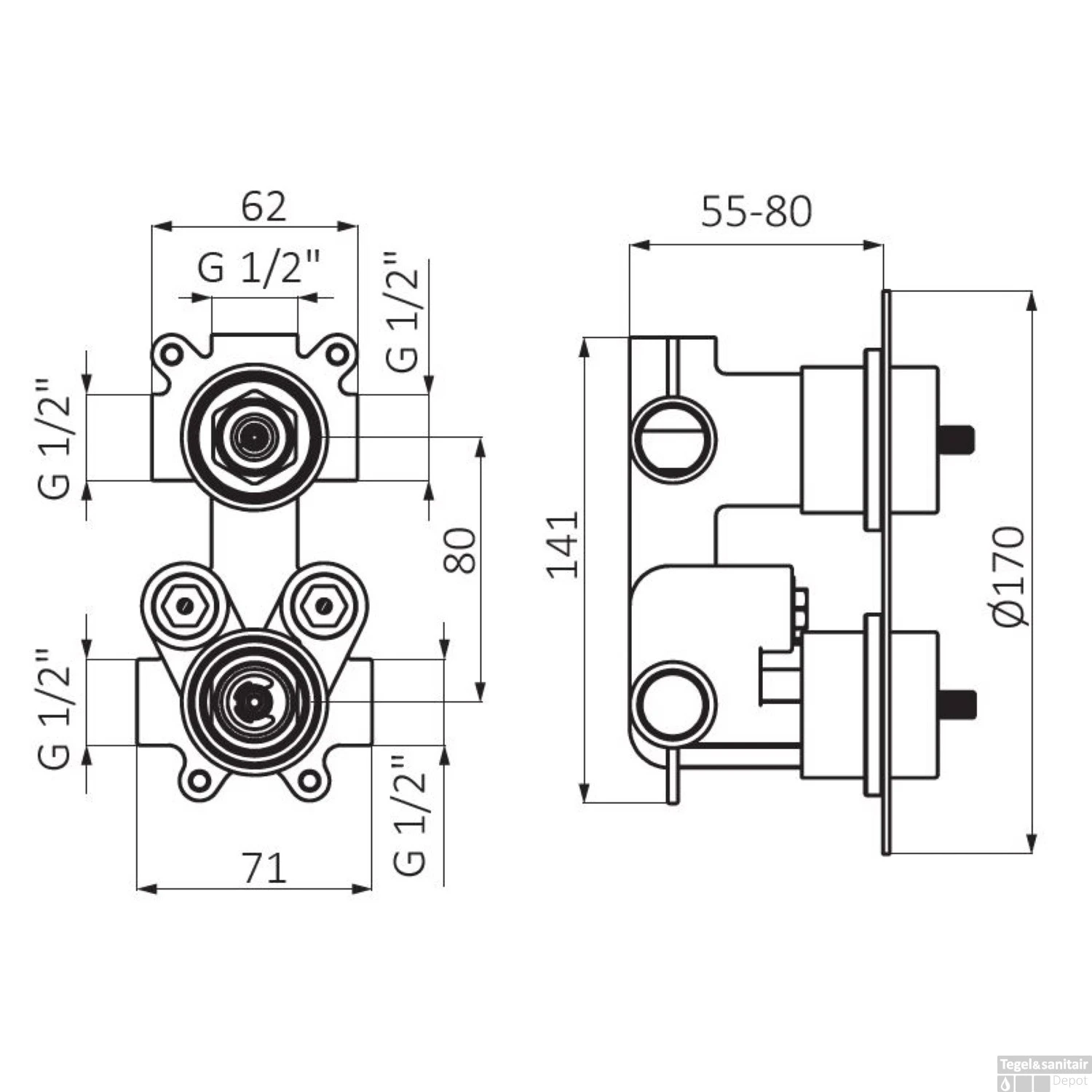 Specificaties Inbouw Douchekraan GRB Aura Thermostatisch 3-Wegs Wit: