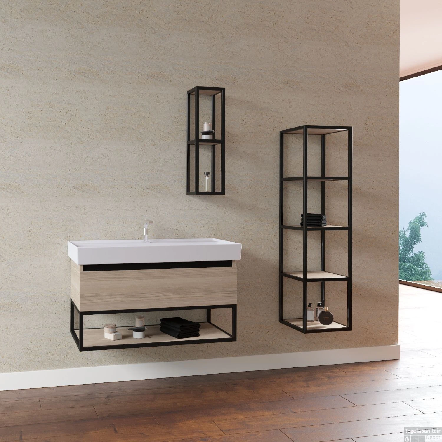 Met de kolomkast van Boss & Wessing uti de Harper serie maakt u uw badkamer helemaal compleet. De open vakken kast heeft een hoogte van 135 cm, een breedte van 35 cm en een diepte van 35 cm. De kast is uitgevoerd in een zwart metalen frame, met daarnaast noten kleurige planken.