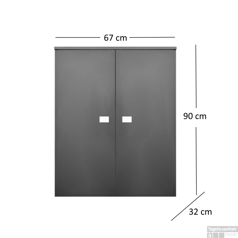 De half hoge kolomkast heeft een hoogte van 90 cm, een breedte van 67 cm en een diepte van 32 cm. De kast valt perfect te combineren met andere producten uit de Q5-serie van Sanicare. De kolomkast is afgewerkt in de kleur antraciet.