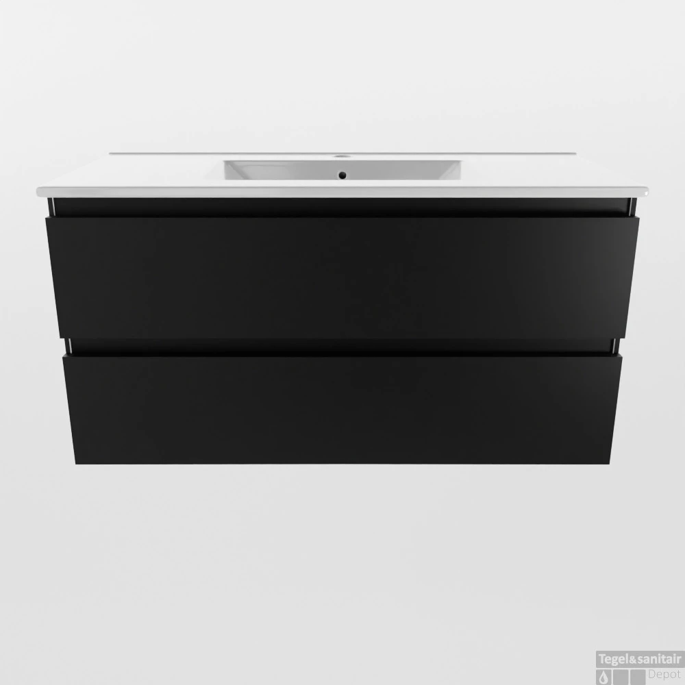 Met badkamermeubels set AIVY heeft u eindeloos veel opties om uw badkamer helemaal naar uw wensen in te vullen. En kunt u van uw badkamer een “formidabele” badkamer maken waar u heerlijk kunt genieten. U ziet hier AIVY 100cm badkamermeubel in de kleur Urban met 2 lades. De AIVY -onderkasten zijn verkrijgbaar in 4 kleuren. De 2 prachtige houttinten melamines Mocha en Chai met een voelbare houtstructuur en 2 effen gespoten kleuren MDF mat wit en matzwart. De AIVY wastafels zijn te krijgen in 2 kleuren Solid Surface, matzwart en mat wit, met de keuze wel of geen kraangaten en DENIA keramisch wit glanzende wastafel is standaard met kraangaten.