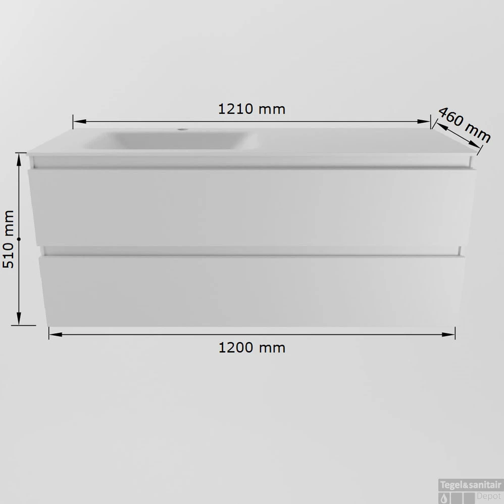- Breedte wastafel: 121cm
