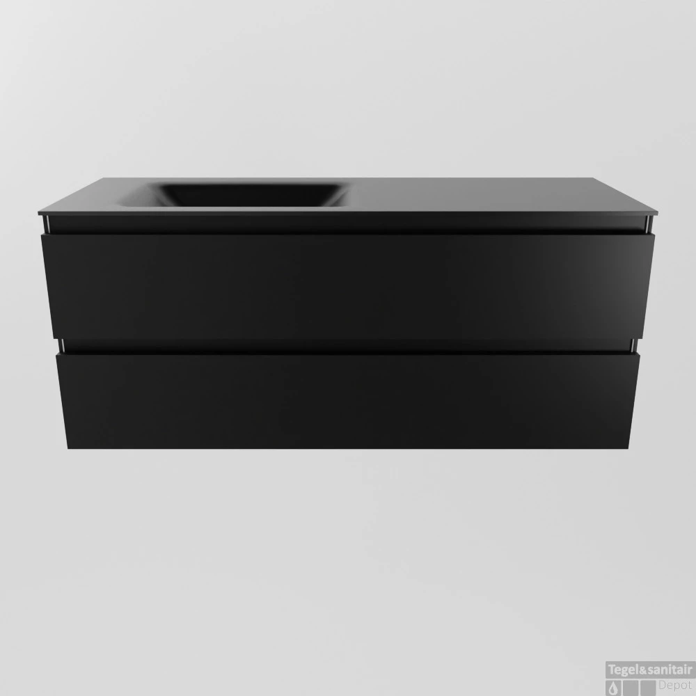 Met badkamermeubels set AIVY heeft u eindeloos veel opties om uw badkamer helemaal naar uw wensen in te vullen. En kunt u van uw badkamer een “formidabele” badkamer maken waar u heerlijk kunt genieten. U ziet hier AIVY 120cm badkamermeubel in de kleur Urban met 2 lades. De AIVY -onderkasten zijn verkrijgbaar in 4 kleuren. De 2 prachtige houttinten melamines Mocha en Chai met een voelbare houtstructuur en 2 effen gespoten kleuren MDF mat wit en matzwart. De AIVY wastafels zijn te krijgen in 2 kleuren Solid Surface, matzwart en mat wit, met de keuze wel of geen kraangaten en DENIA keramisch wit glanzende wastafel is standaard met kraangaten.