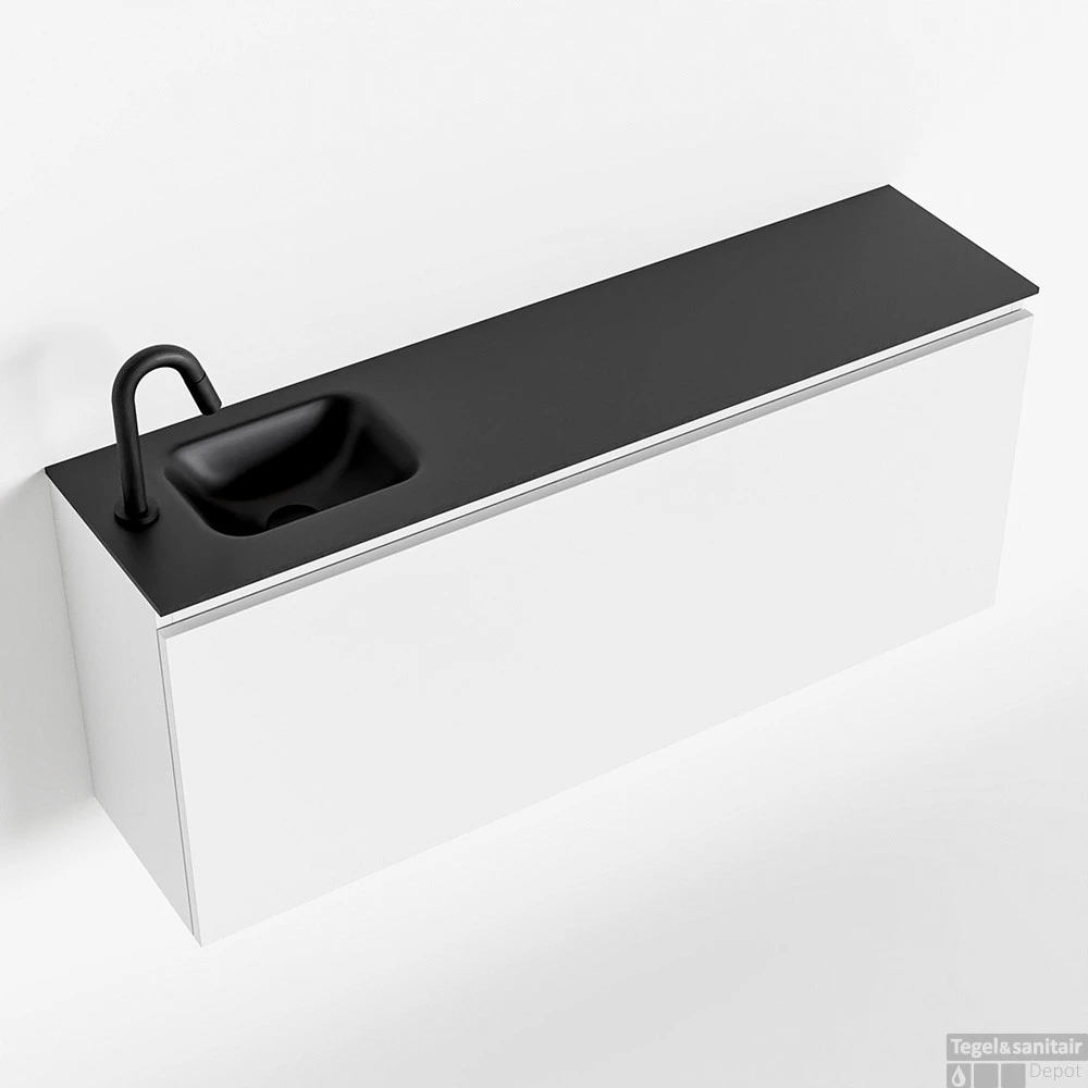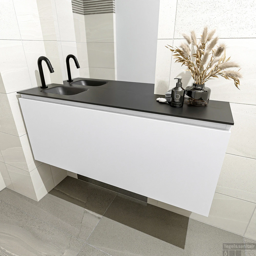 Een mooie combinatie van elegant en rustiek krijg je met het toiletmeubel OLAN! Wat je hier ziet is de vrijhangende onderkast OLAN in 120cm breed met 1 lade in de kleur talc en een solid surface wastafel model LEX in de kleur urban. De positie van de spoelbak is links 1 kraangat. In deze toiletmeubel serie hebben wij al meer dan 680 variaties samengesteld! Daarnaast is maatwerk mogelijk.