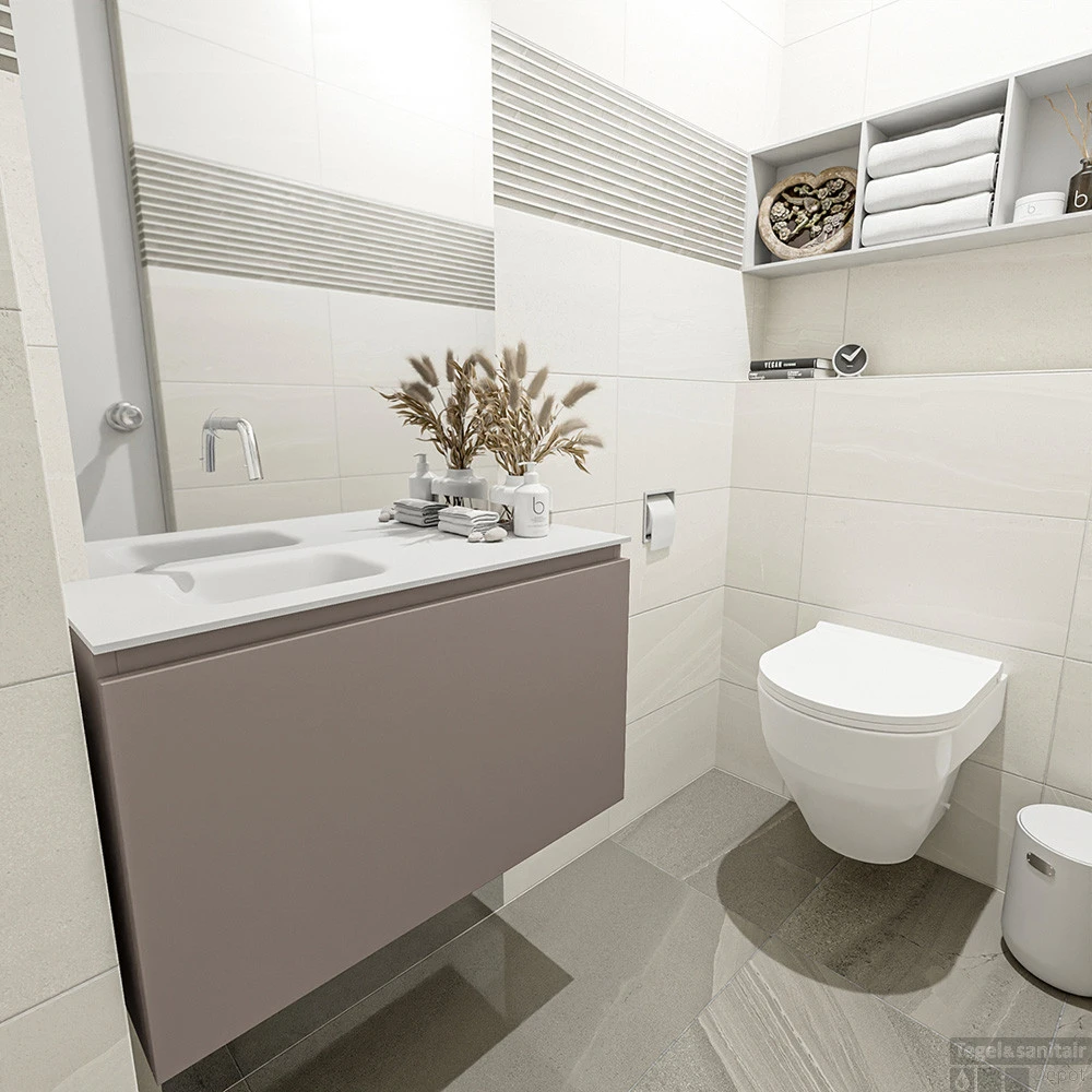 MONDIAZ MONDIAZ OLAN 80cm toiletmeubel smoke. LEX wastafel talc links geen kraangat