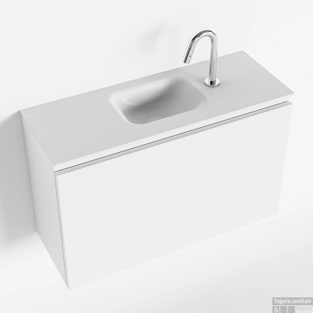 Een mooie combinatie van elegant en rustiek krijg je met het toiletmeubel OLAN! Wat je hier ziet is de vrijhangende onderkast OLAN in 80cm breed met 1 lade in de kleur talc en een solid surface wastafel model LEX in de kleur talc. De positie van de spoelbak is midden 1 kraangat. In deze toiletmeubel serie hebben wij al meer dan 680 variaties samengesteld! Daarnaast is maatwerk mogelijk.
