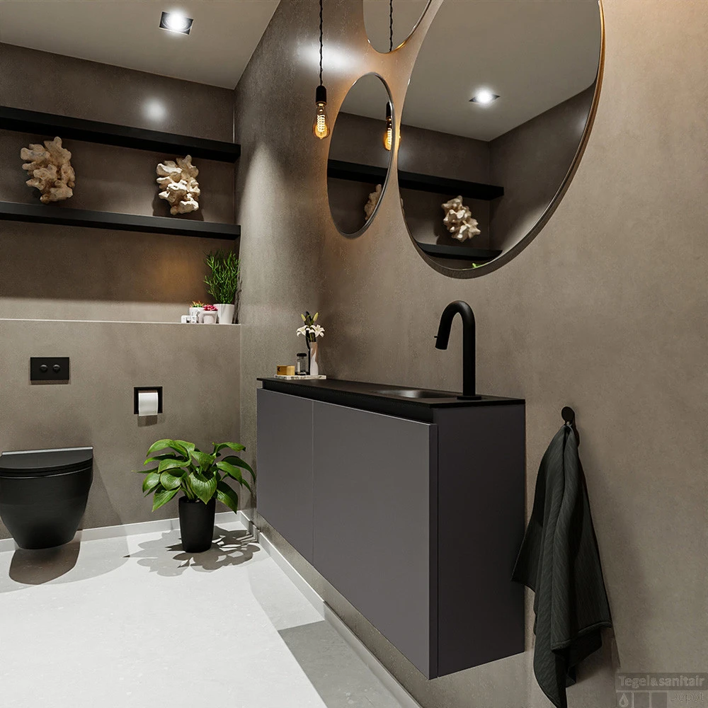 MONDIAZ MONDIAZ TURE 120cm toiletmeubel dark grey. EDEN wastafel urban rechts 1 kraangat