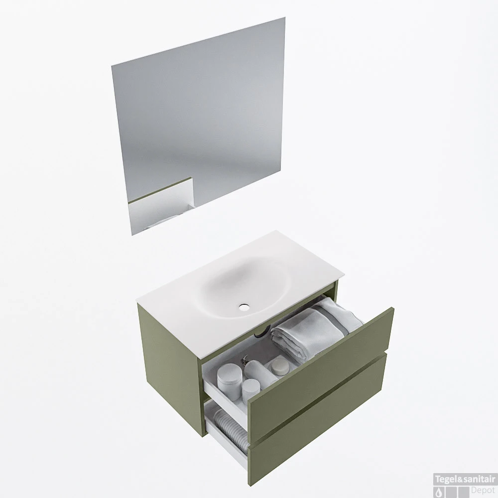 Uw badkamermeubel kunt u het beste schoonmaken door een sopje te maken met een klein beetje sanitair schoonmaakmiddel geen anti kalk of bijtende producten. Wanneer u te veel schoonmaakmiddel gebruikt krijgt u een doffe glans op het meubel. Dan met een licht vochtige doek zachtjes het meubel schoonmaken en na drogen met een droge doek. Let op met het gebruik van microvezeldoekjes, hierin blijven soms harde steentjes plakken waardoor u krassen kunt krijgen op het meubel.