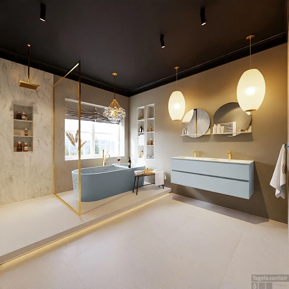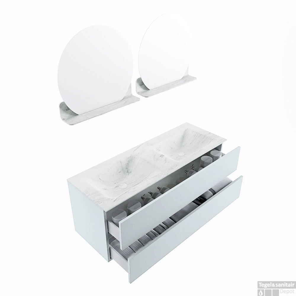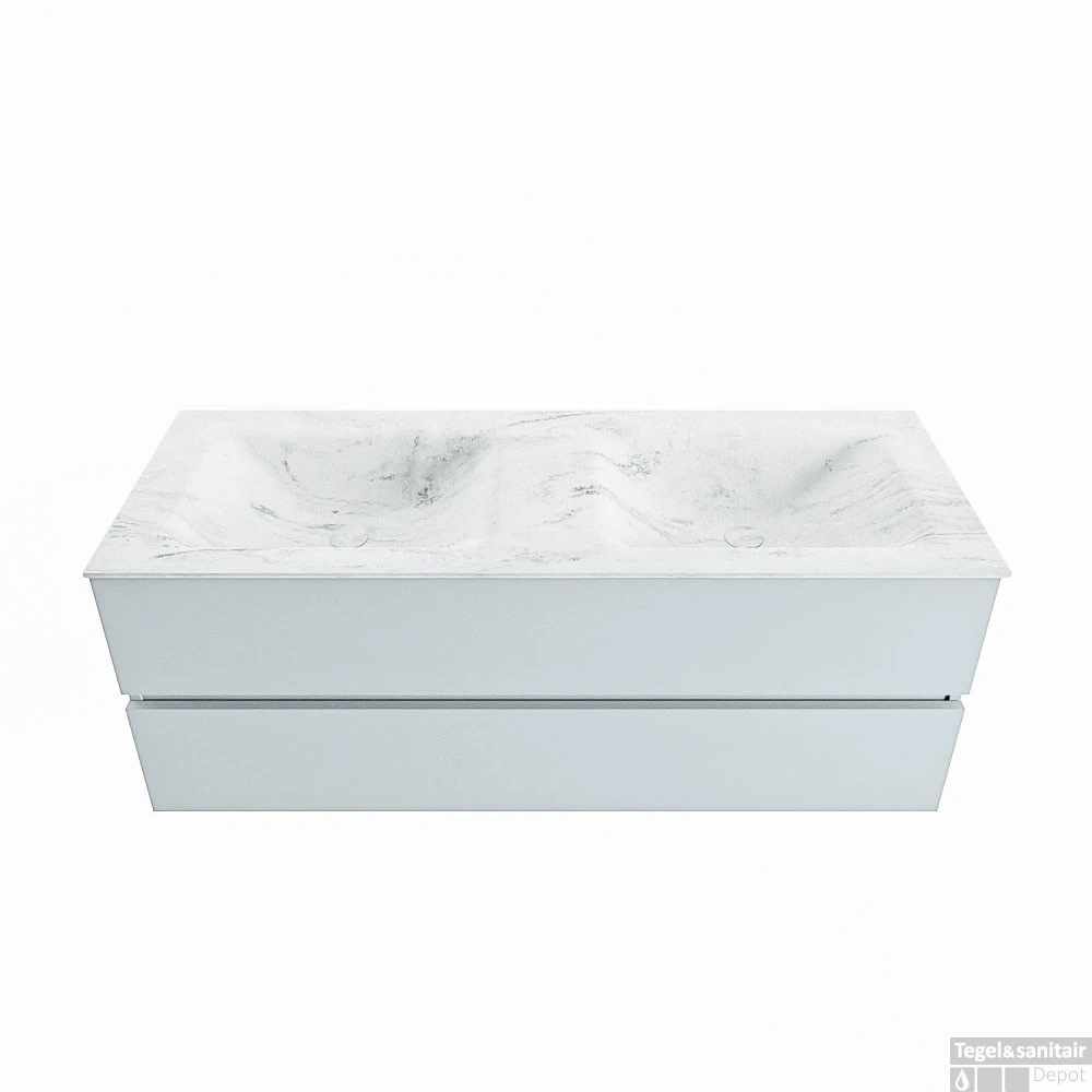 De buitengewone mooie badmeubel set VICA DLUX is een schitterend pronkstuk in uw badkamer. De gemarmerde Solid Surface wastafel van CORIAN heeft een fraaie en tijdloze uitstraling. Door de zachte en natuurlijke vorm van de wastafel, gecombineerd met de tijdloze en prachtige badmeubel onderkast past de VICA-DLUX goed bij de diverse stijlen badkamers. Om uw badkamer compleet te af te stijlen hebben wij ook de nissen en spiegelhouders in dezelfde kleur als de wastafel. Zoals de nissen en spiegel planchetten. De serie VICA DLUX bestaat uit de 2 of 4 laden onderkast VICA gecombineerd met een CORIAN Solid Surface wastafel met marmer structuur. De Solid Surface CORIAN wastafel is in 5 marmer looks verkrijgbaar. Met deze badkamermeubel set heeft u wel die mooie marmeren uitstraling maar tevens ook het gemak en de hygiëne van Solid Surface.