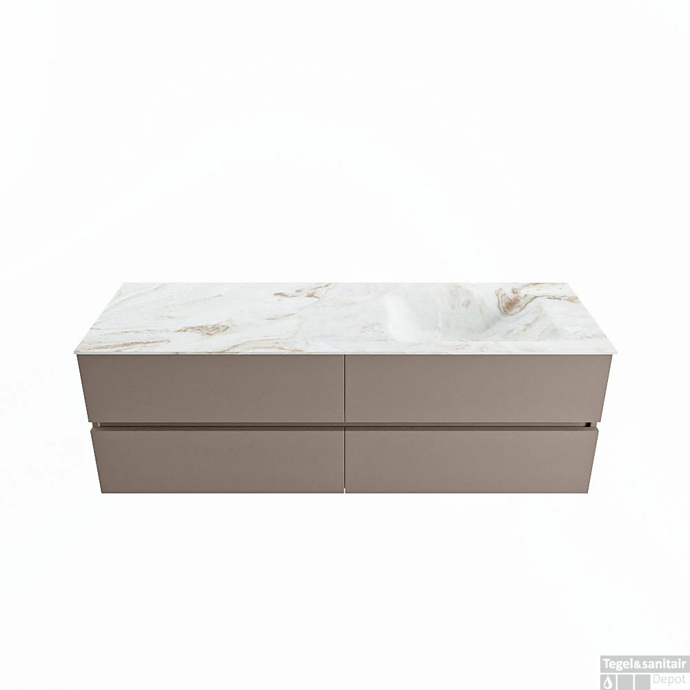 De buitengewone mooie badmeubel set VICA DLUX is een schitterend pronkstuk in uw badkamer. De gemarmerde Solid Surface wastafel van CORIAN heeft een fraaie en tijdloze uitstraling. Door de zachte en natuurlijke vorm van de wastafel, gecombineerd met de tijdloze en prachtige badmeubel onderkast past de VICA-DLUX goed bij de diverse stijlen badkamers. Om uw badkamer compleet te af te stijlen hebben wij ook de nissen en spiegelhouders in dezelfde kleur als de wastafel. Zoals de nissen en spiegel planchetten. De serie VICA DLUX bestaat uit de 2 of 4 laden onderkast VICA gecombineerd met een CORIAN Solid Surface wastafel met marmer structuur. De Solid Surface CORIAN wastafel is in 5 marmer looks verkrijgbaar. Met deze badkamermeubel set heeft u wel die mooie marmeren uitstraling maar tevens ook het gemak en de hygiëne van Solid Surface.