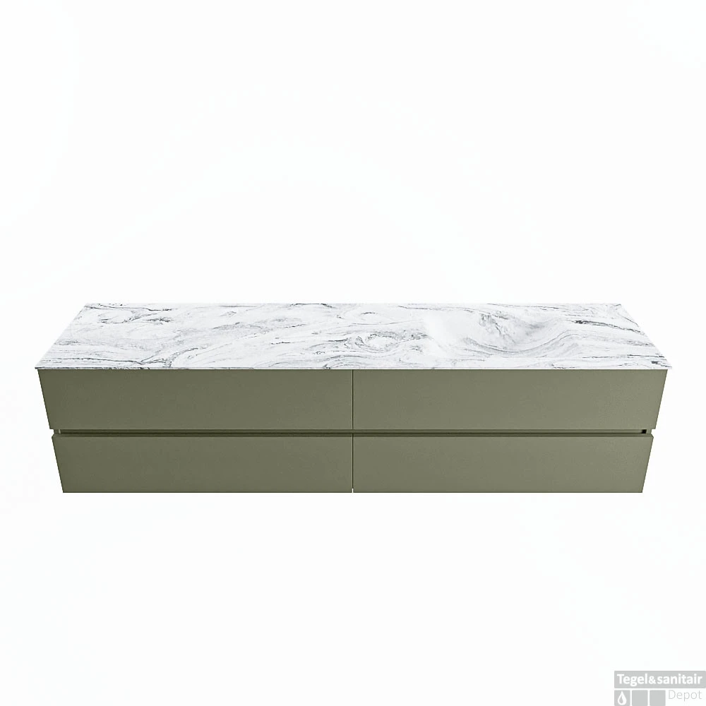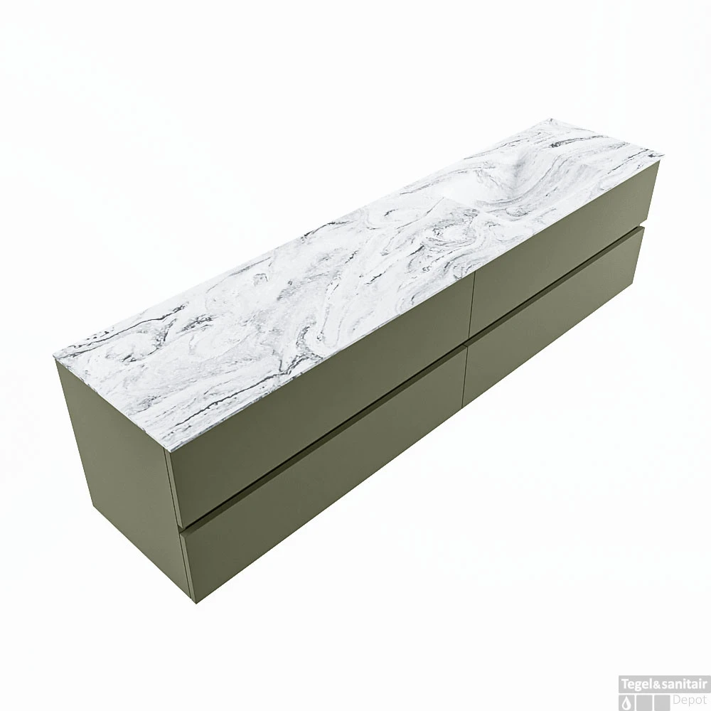 De buitengewone mooie badmeubel set VICA DLUX is een schitterend pronkstuk in uw badkamer. De gemarmerde Solid Surface wastafel van CORIAN heeft een fraaie en tijdloze uitstraling. Door de zachte en natuurlijke vorm van de wastafel, gecombineerd met de tijdloze en prachtige badmeubel onderkast past de VICA-DLUX goed bij de diverse stijlen badkamers. Om uw badkamer compleet te af te stijlen hebben wij ook de nissen en spiegelhouders in dezelfde kleur als de wastafel. Zoals de nissen en spiegel planchetten. De serie VICA DLUX bestaat uit de 2 of 4 laden onderkast VICA gecombineerd met een CORIAN Solid Surface wastafel met marmer structuur. De Solid Surface CORIAN wastafel is in 5 marmer looks verkrijgbaar. Met deze badkamermeubel set heeft u wel die mooie marmeren uitstraling maar tevens ook het gemak en de hygiëne van Solid Surface.