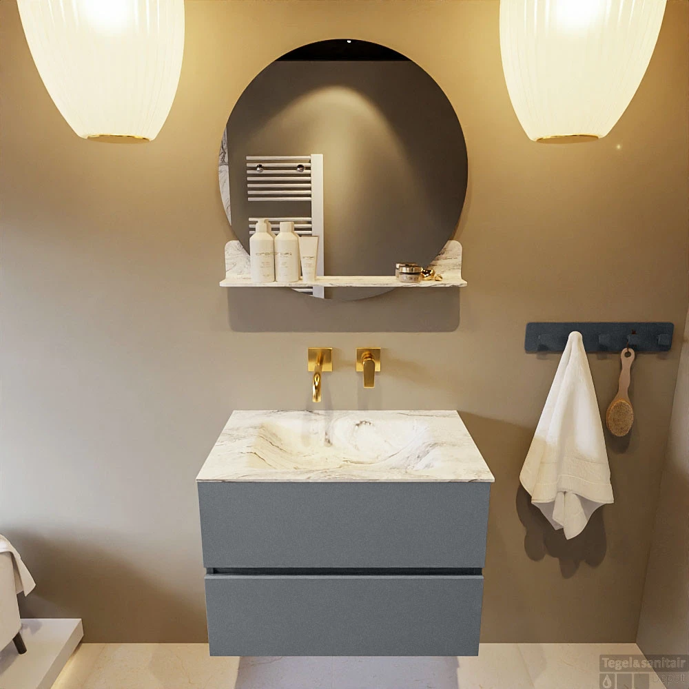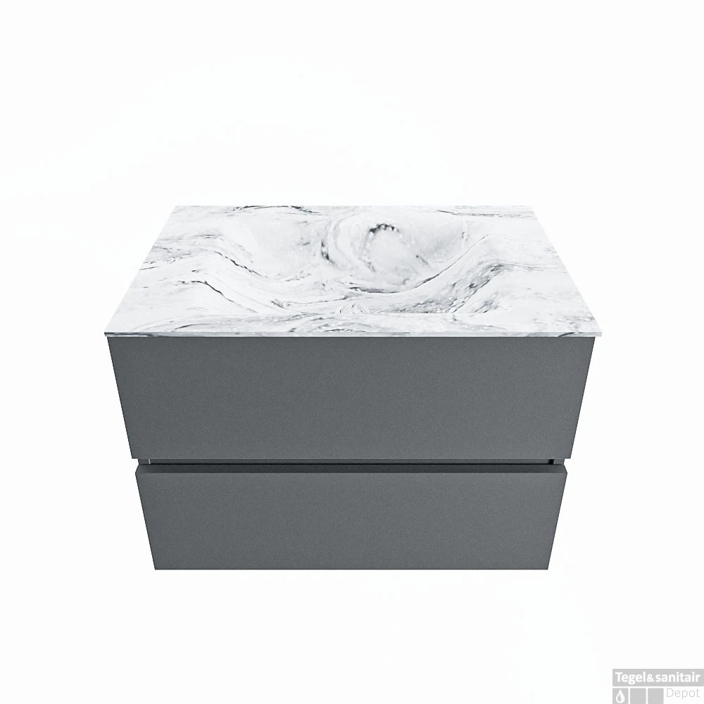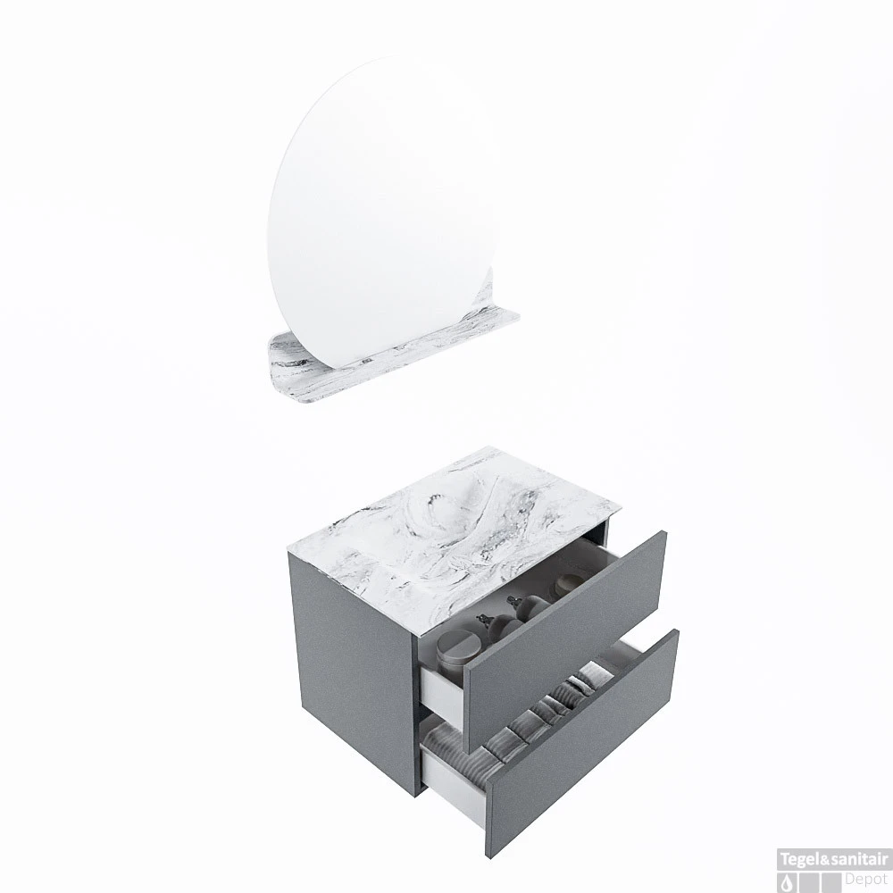 De buitengewone mooie badmeubel set VICA DLUX is een schitterend pronkstuk in uw badkamer. De gemarmerde Solid Surface wastafel van CORIAN heeft een fraaie en tijdloze uitstraling. Door de zachte en natuurlijke vorm van de wastafel, gecombineerd met de tijdloze en prachtige badmeubel onderkast past de VICA-DLUX goed bij de diverse stijlen badkamers. Om uw badkamer compleet te af te stijlen hebben wij ook de nissen en spiegelhouders in dezelfde kleur als de wastafel. Zoals de nissen en spiegel planchetten. De serie VICA DLUX bestaat uit de 2 of 4 laden onderkast VICA gecombineerd met een CORIAN Solid Surface wastafel met marmer structuur. De Solid Surface CORIAN wastafel is in 5 marmer looks verkrijgbaar. Met deze badkamermeubel set heeft u wel die mooie marmeren uitstraling maar tevens ook het gemak en de hygiëne van Solid Surface.