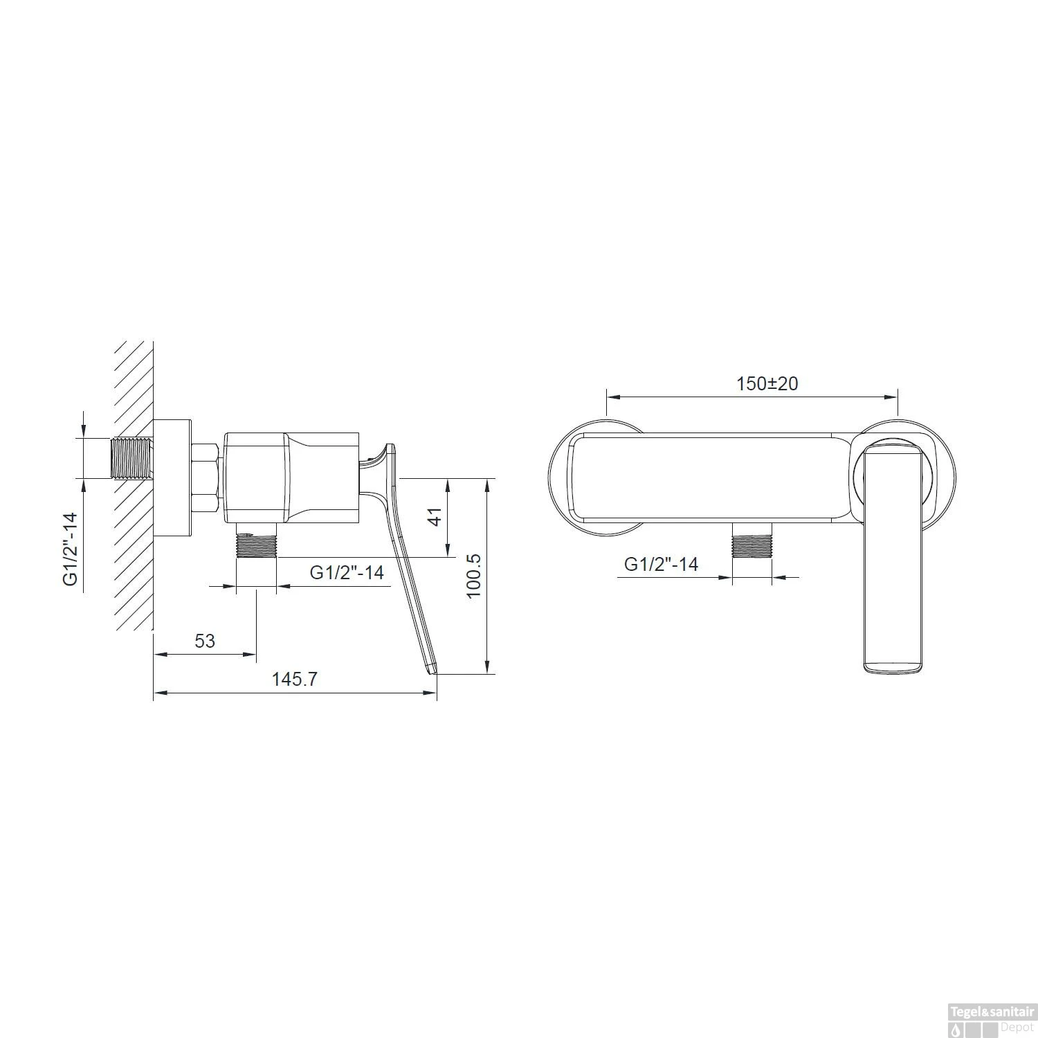 - – Diepte aansluiting doucheslang: 5.3 cm