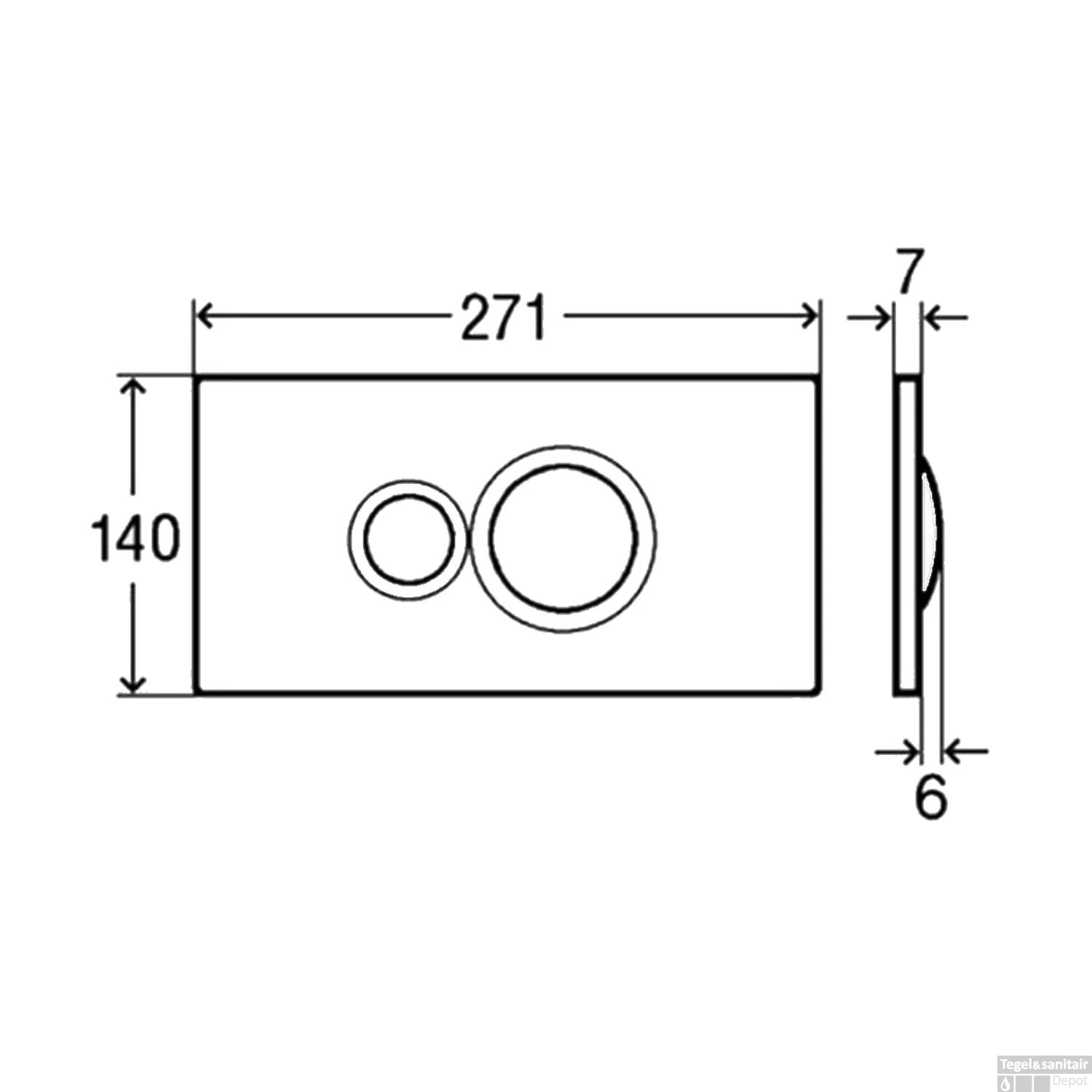 De drukplaat is voorzien van een waterbesparende 2-toets spoeling om u te helpen water te besparen. De Style 10 is alleen geschikt voor frontbediening en heeft 2 mooie ronde toetsen die zijn gemaakt met mechanisch spoelsysteem. U hoeft niet veel kracht te zetten om de spoeling zijn werk te laten doen. Gemaakt van kunststof en heeft een afmeting van 27.1 cm breed en 14 cm hoog.