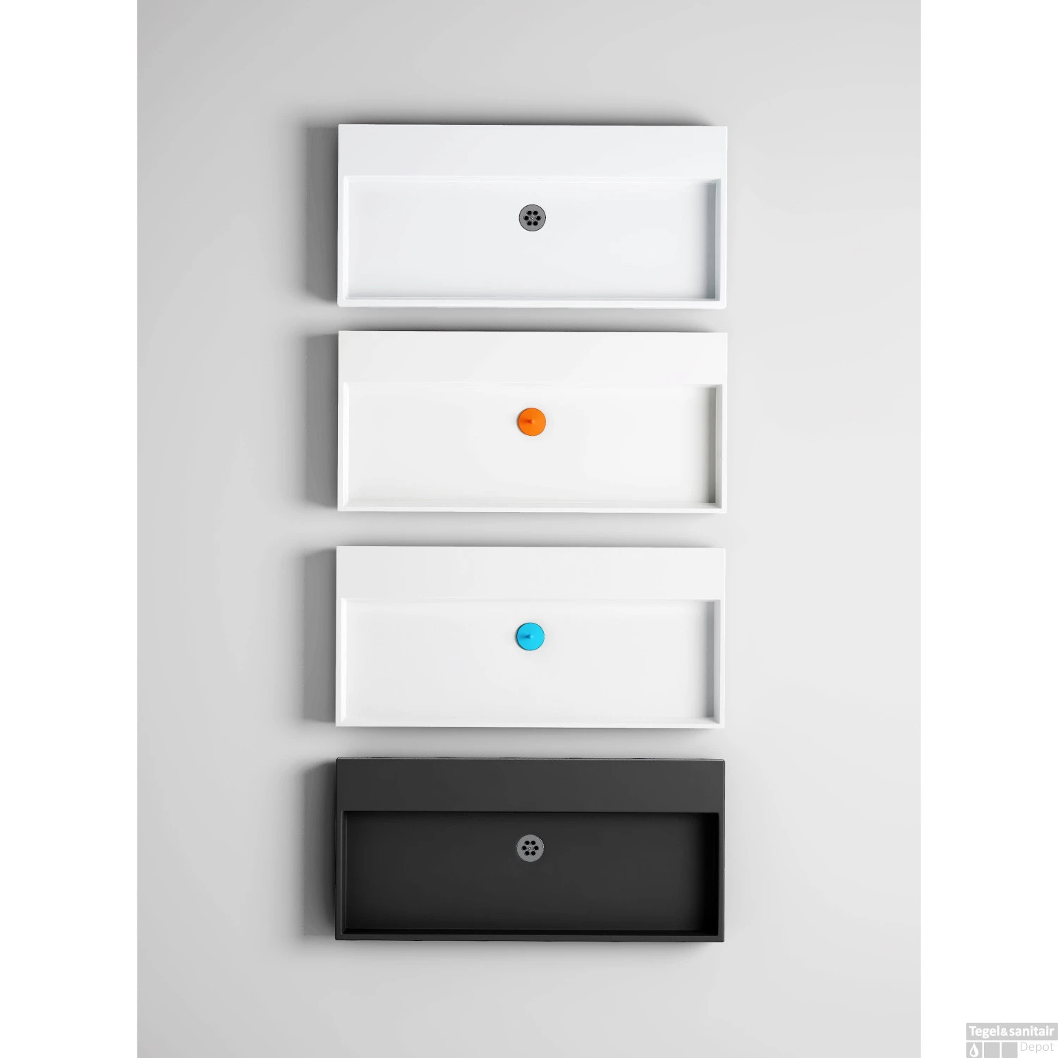 De Clou Wash Me wastafel wordt standaard zonder plug en zonder waterstop met overloop geleverd. U kan onderaan deze bijbestellen tegen een meerprijs.